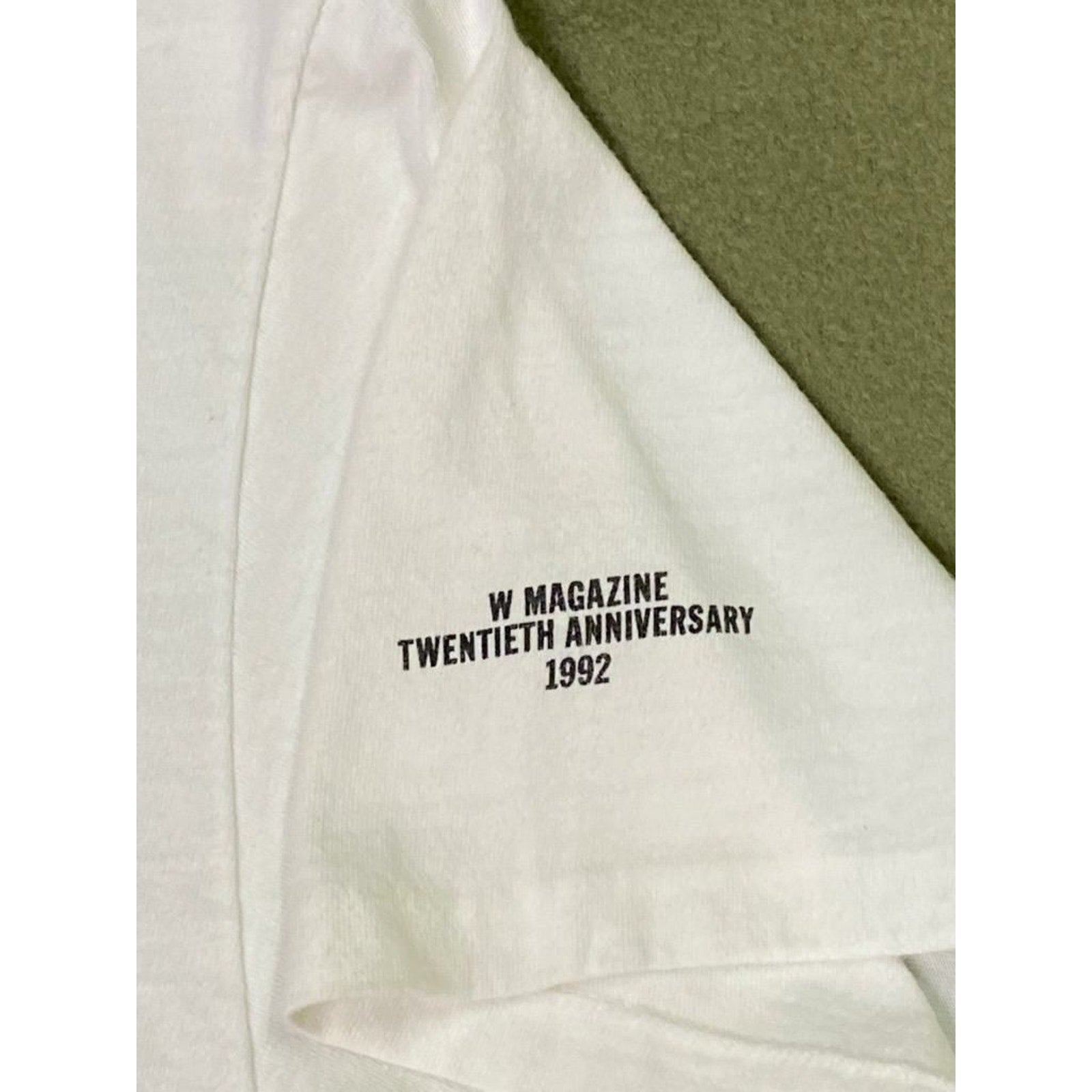 Giorgio Armani, Jean Paul Gaultier, Donna Karan, Calvin Klein, Karl Lagerfeld and Isaac Mizrahi have all designed commemorative anniversary T-shirts to mark the occasion of the 20th Anniversary of W MAGAZINE. The proceeds from these T-SHIRTS helped benefit AIDS hospice care in Paris, Milan, New York, Los Angeles, San Francisco, Dallas and Detroit. This is a Rare Find ~ 1992 Calvin Klein 20TH Anniversary Commemorative W MAGAZINE t shirt. 100% pre-shrunk cotton.