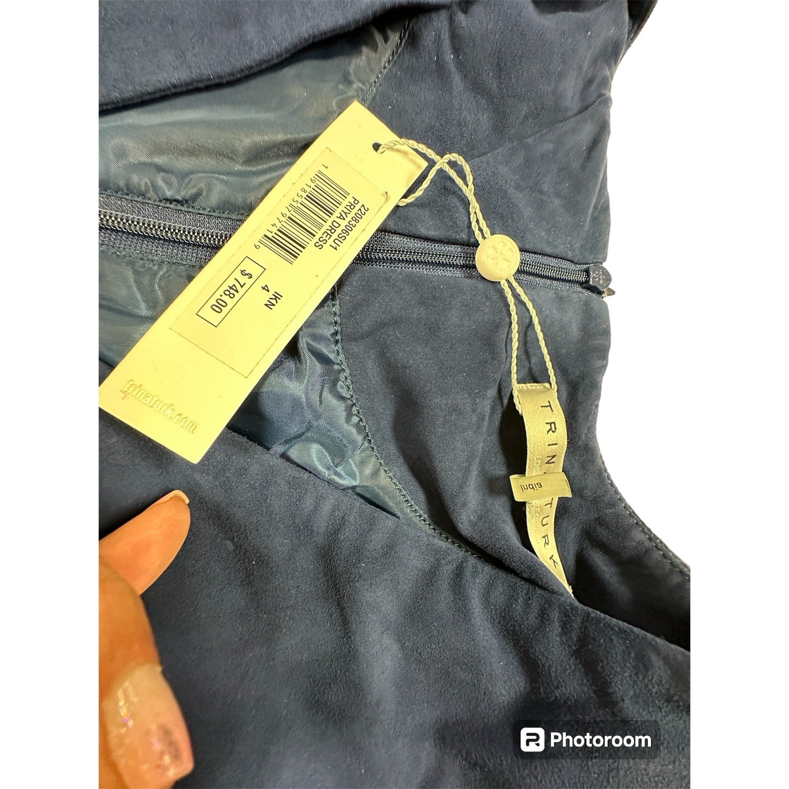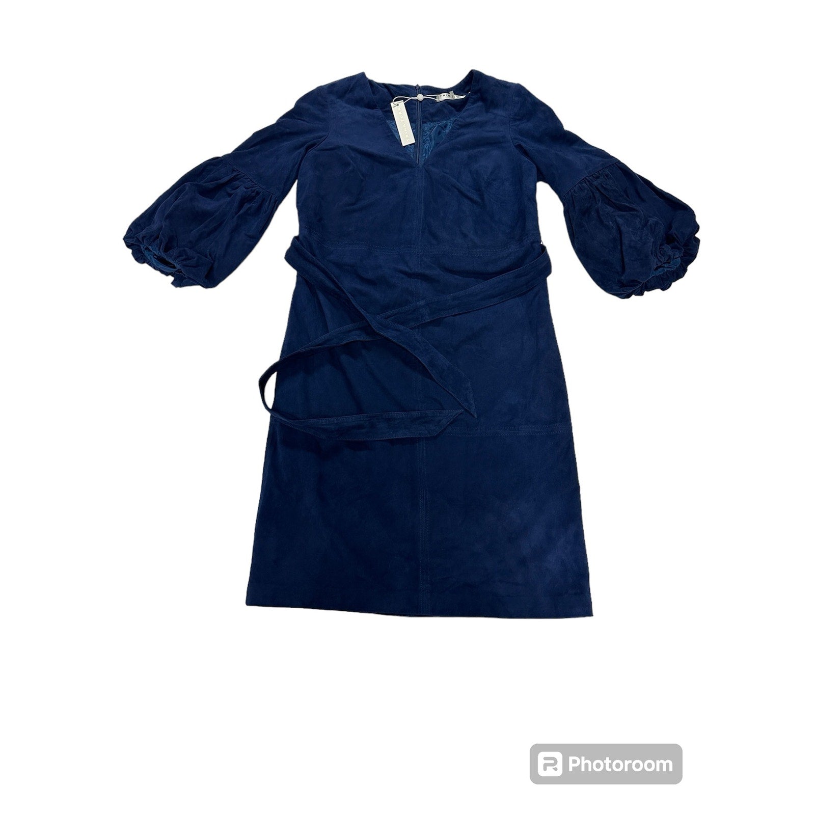 $748 Trina Turk Pryia Navy Blue Suede Dress Size 4 NWT