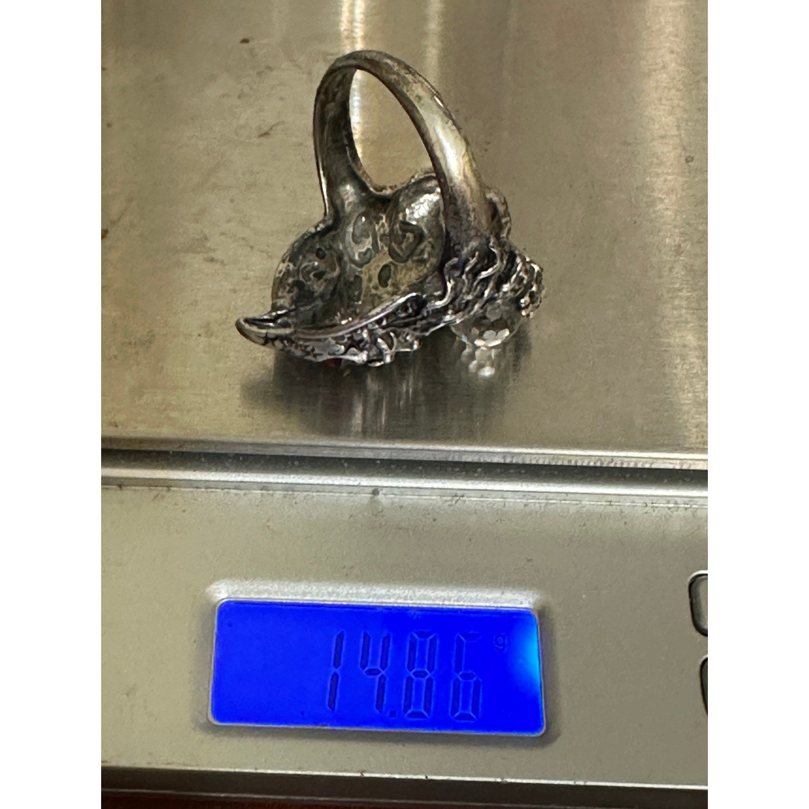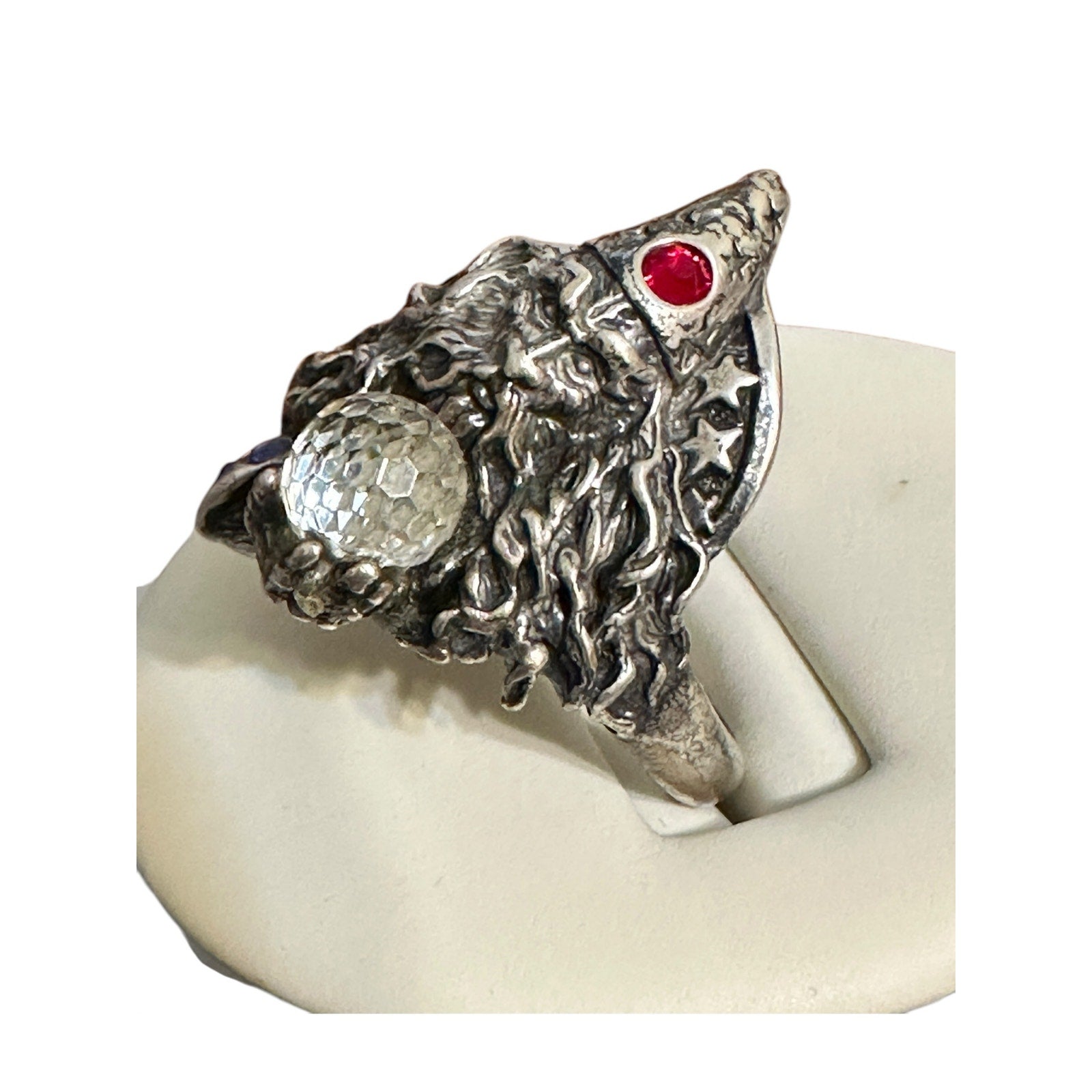 Amazing Detailed Large Sterling Silver Jeweled Wizard with stunning Magical Crystal Ball Ring Size 12 3/4. Very nice solid Ring. Marked Sterling and has a makers mark as shown. Great Gift!!