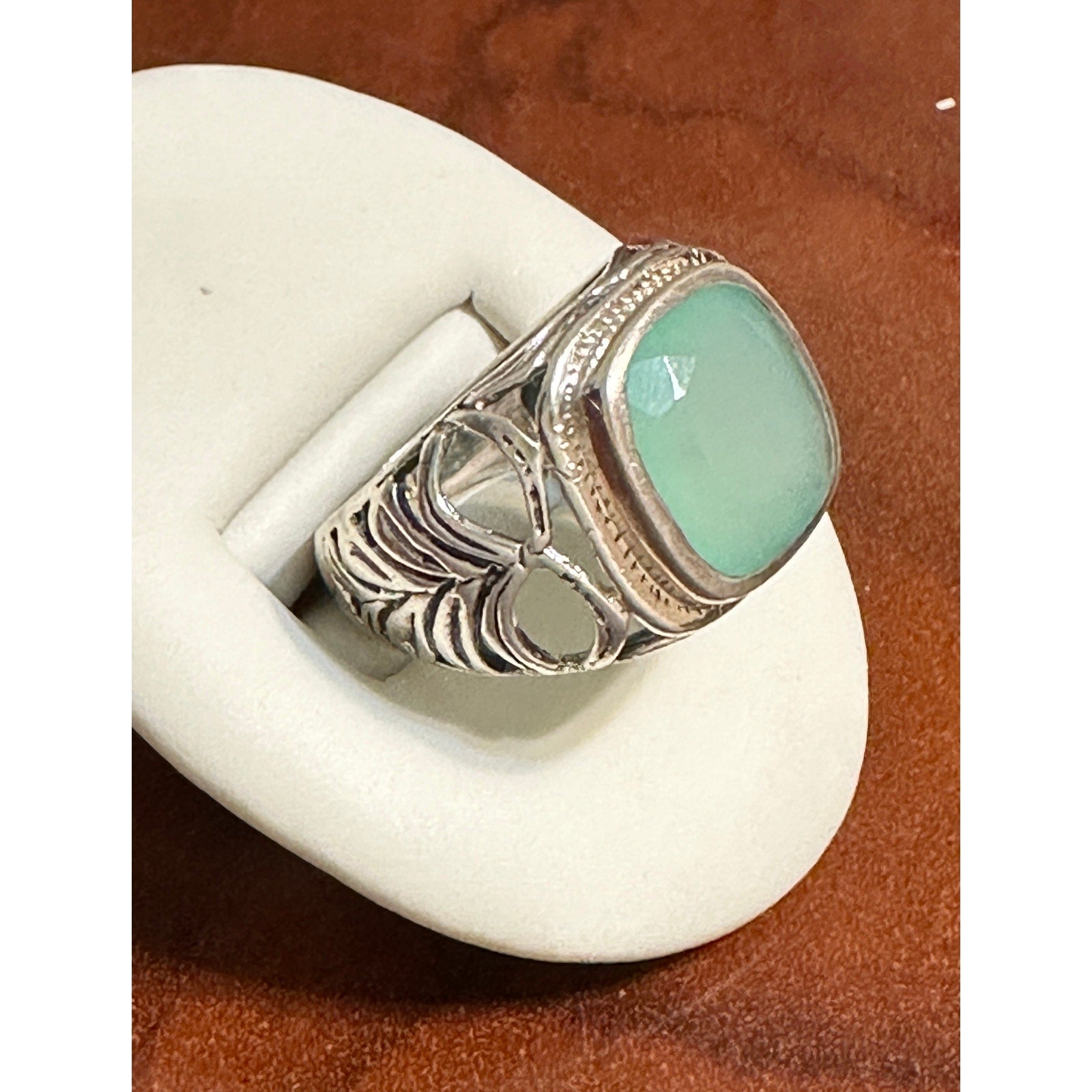 Chunky Sterling Silver Green Chalcedony Ring Size 8.5