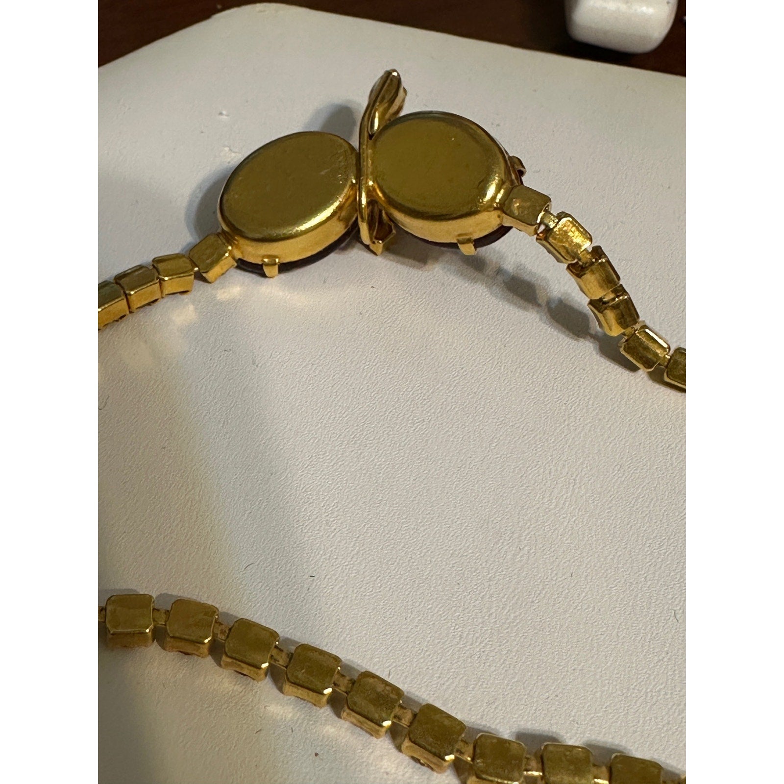 Delizza and Elster Juliana Goldtone Necklace – Ruby Red Aventurine/Red Fluss stones. Measures 16 1/2”. Excellent condition.