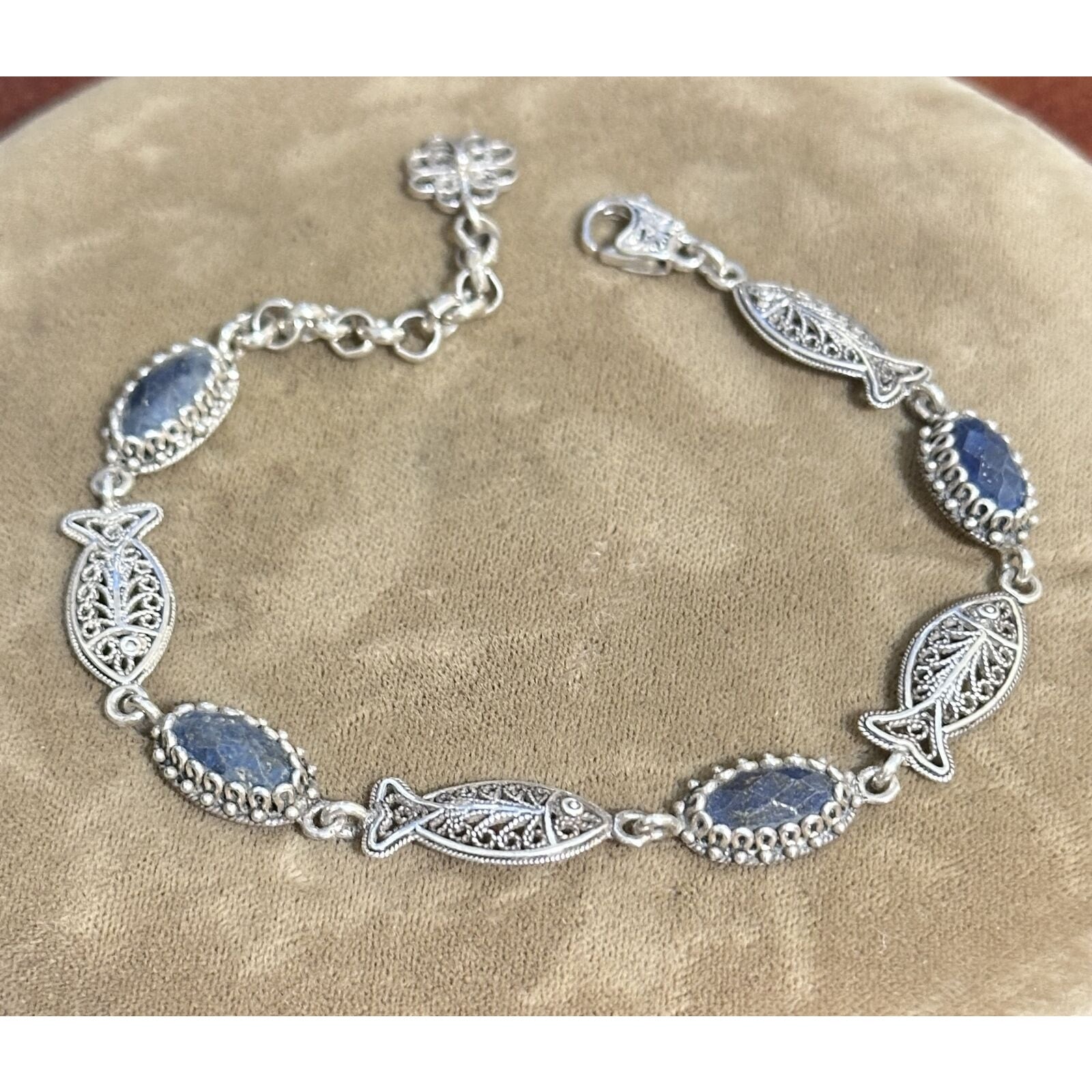DGS Sterling Silver Filigree Fish Lapis Link Bracelet