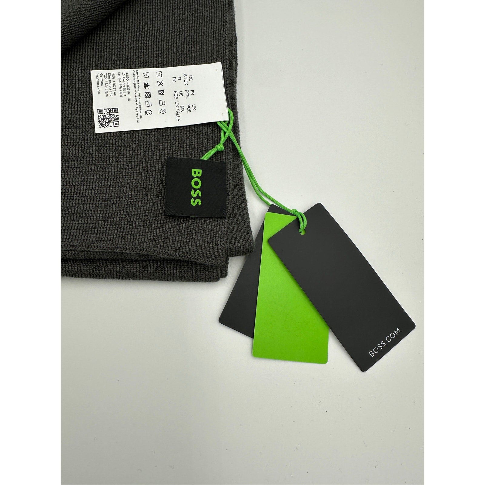 BOSS ARIDE_ SCARF_X 50499399 ~ Hugo Boss Aride X Scarf Gray Black Logo NWT 50499399. Wool Blend.
