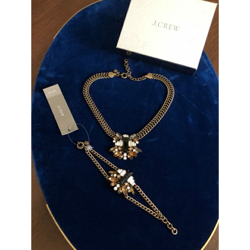J. Crew Antiqued Goldtone faux Smoky Topaz, Amber Topaz, Onyx Rhinestone Necklace & Bracelet Set. Necklace measures approx 16"; adjustable to 18". Pendant section 1 1/2"x 2". The bracelet is 6 1/4"; and adjustable to 7 3/8". Stone section is 1 13/8" a 1 7/8" . Tag was on it but fell off. I will send with it. Set is in excellent condition and comes with original box.