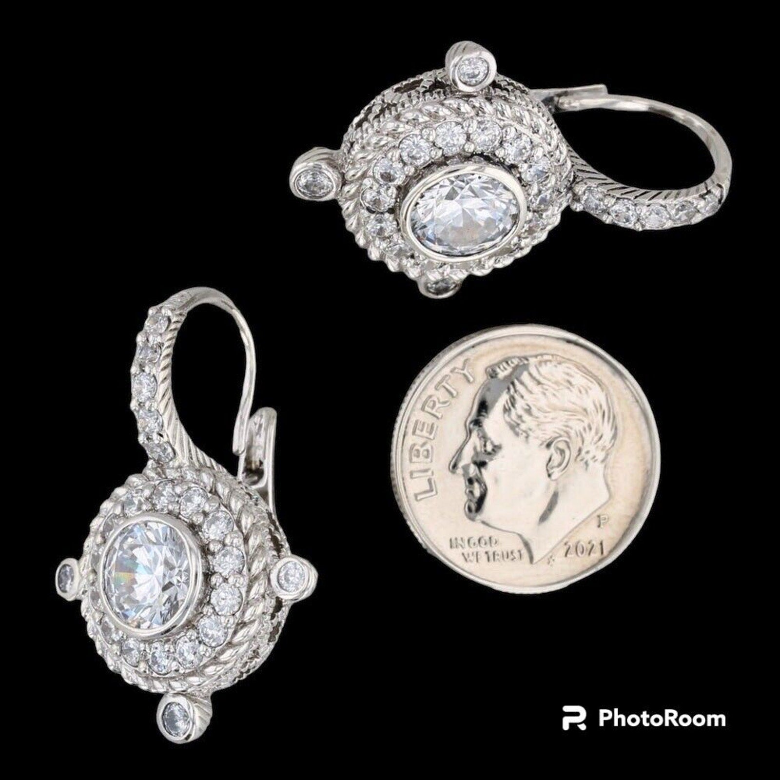 Judith Ripka Cubic Zirconia 5ct Drop/ Dangle Sterling Silver Earrings- Vintage CZ Earrings