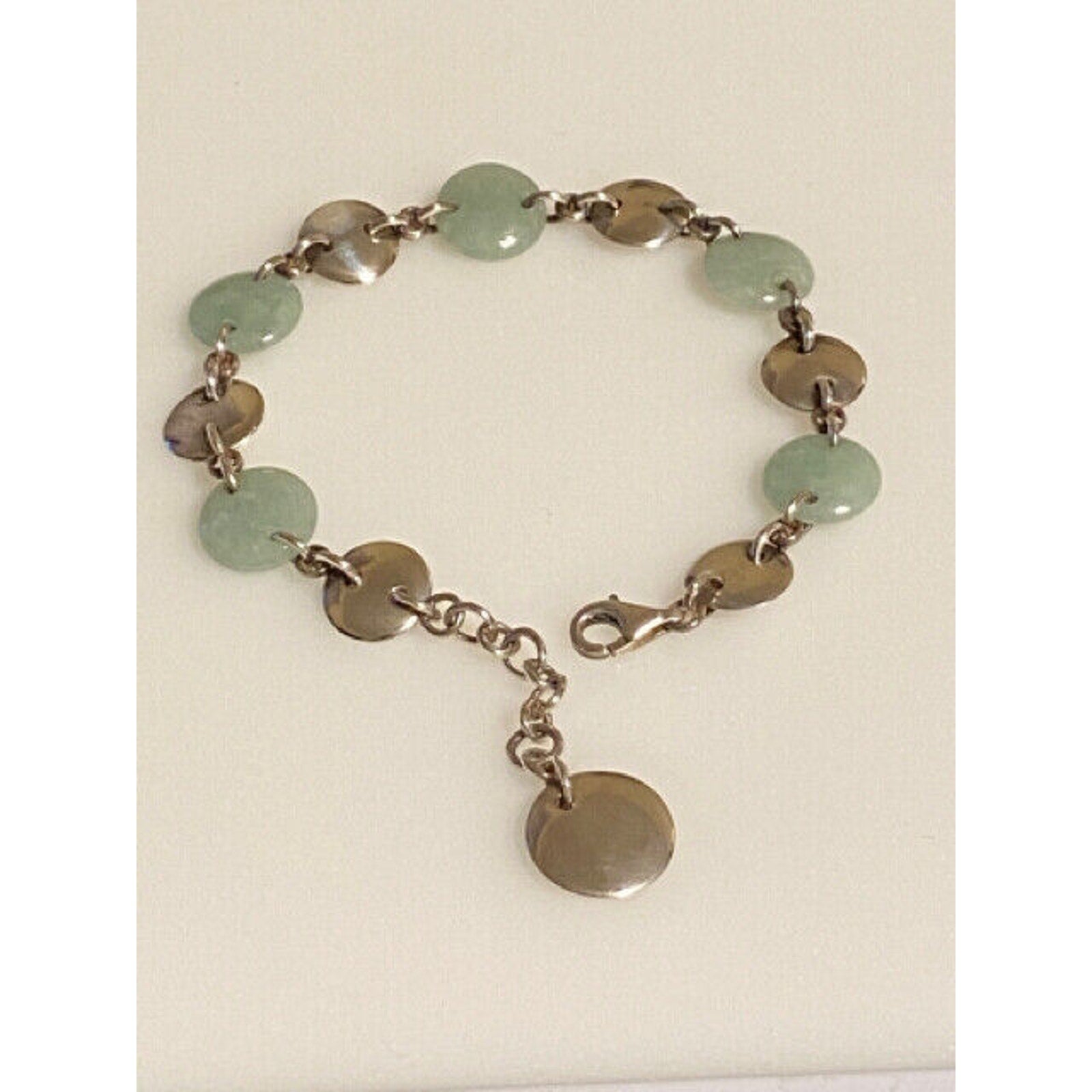 Ladies Sterling Silver Jade Disc Link Bracelet
