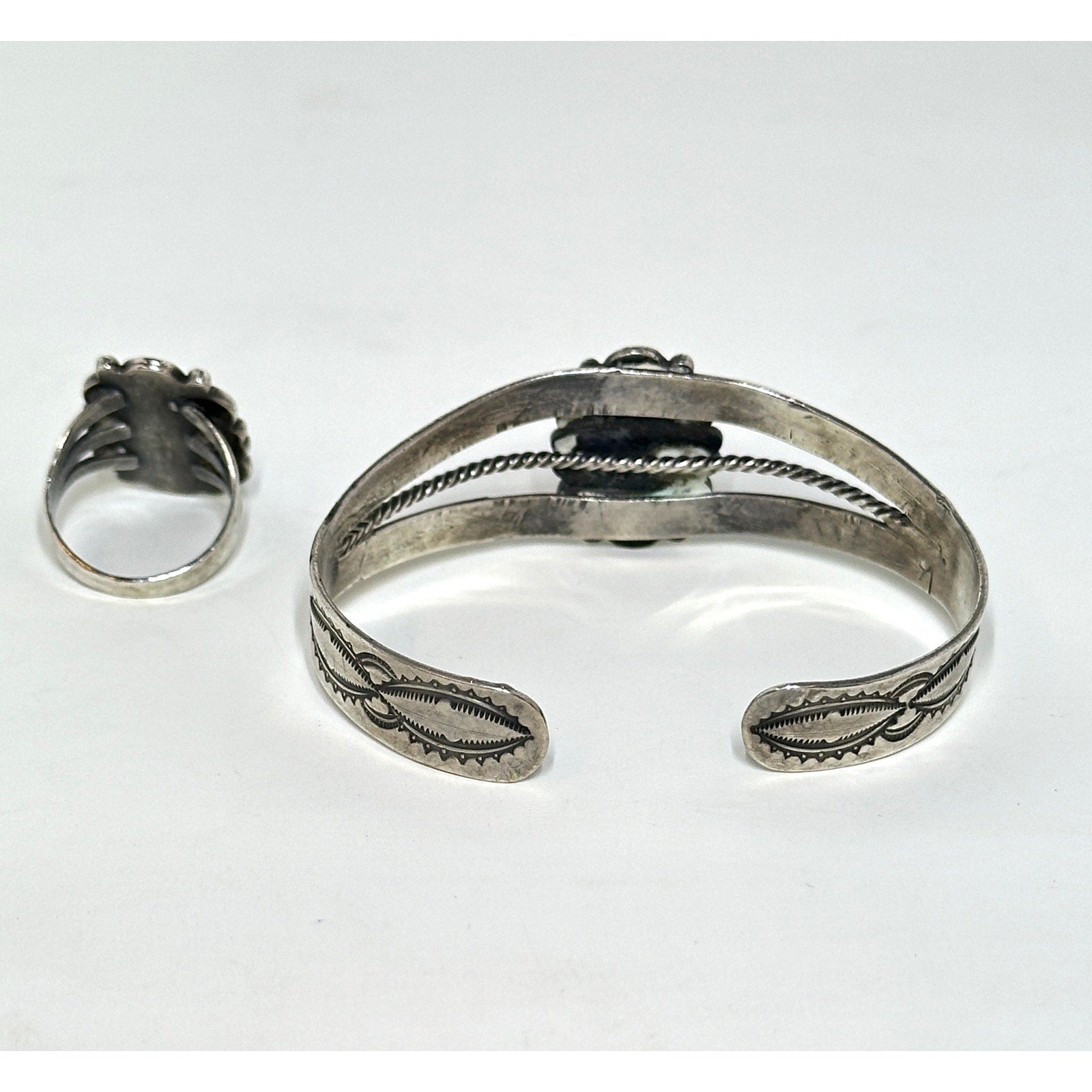 Native American Sterling Silver Red Jasper Petrified Wood Cuff Bracelet measuring 5 1/2" with 3/4" gap x 7/8" wide & Size 6 Ring. Both in Excellent Condition