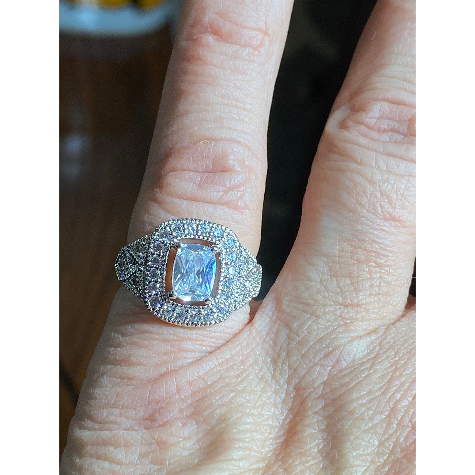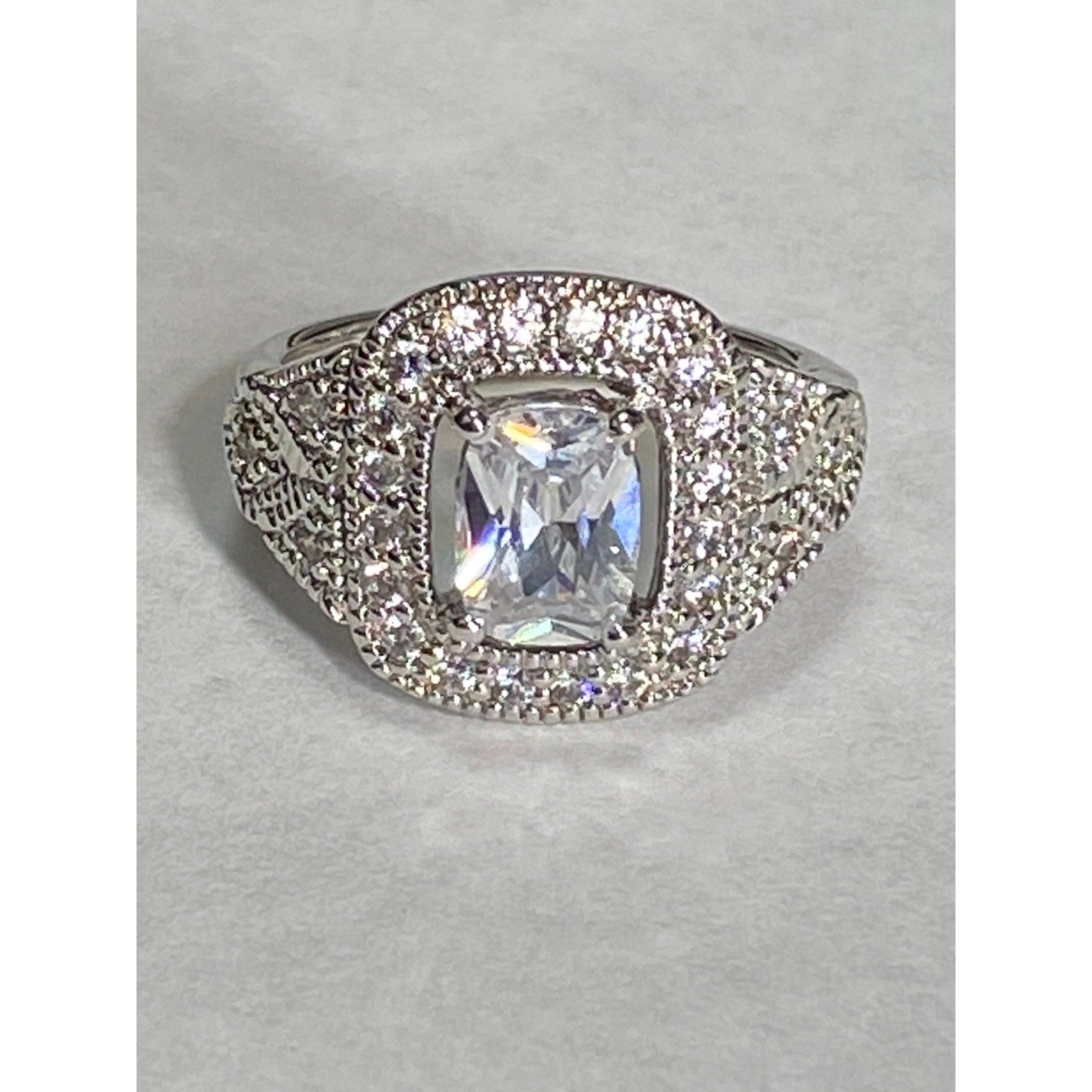 PDJ Sparkling CZ Art Deco Style Ring Size 7. White Gold Plated CZ Ring in Excellent Condition. Center stone measures 8mm x 6mm. Beautiful Art Deco Style Setting.