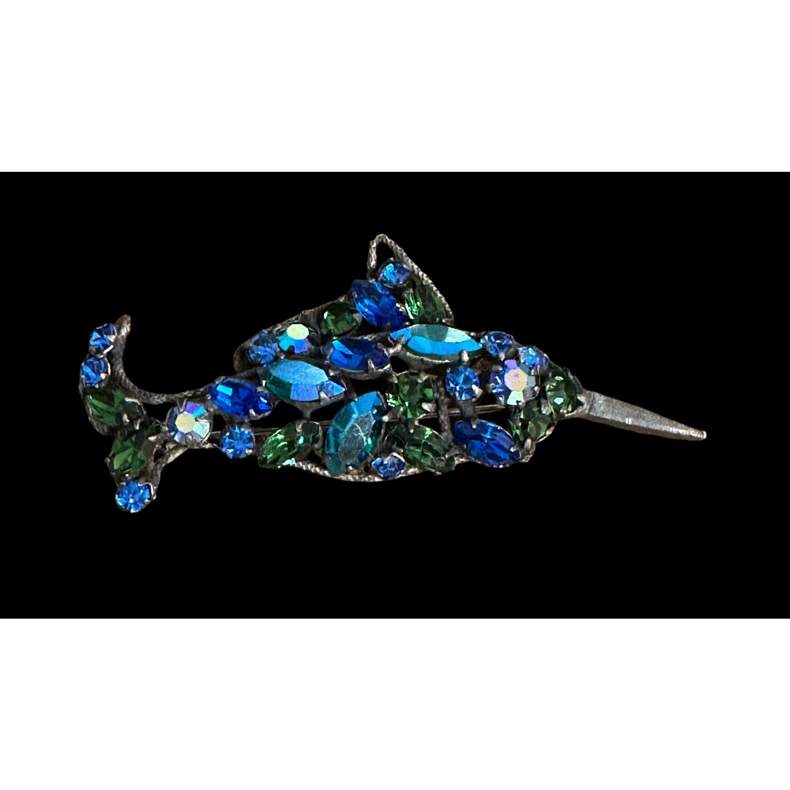 Rare Vintage Regency Blue Swordfish Pin Brooch Signed