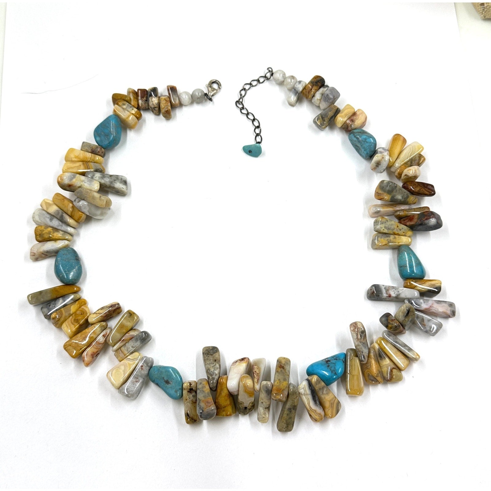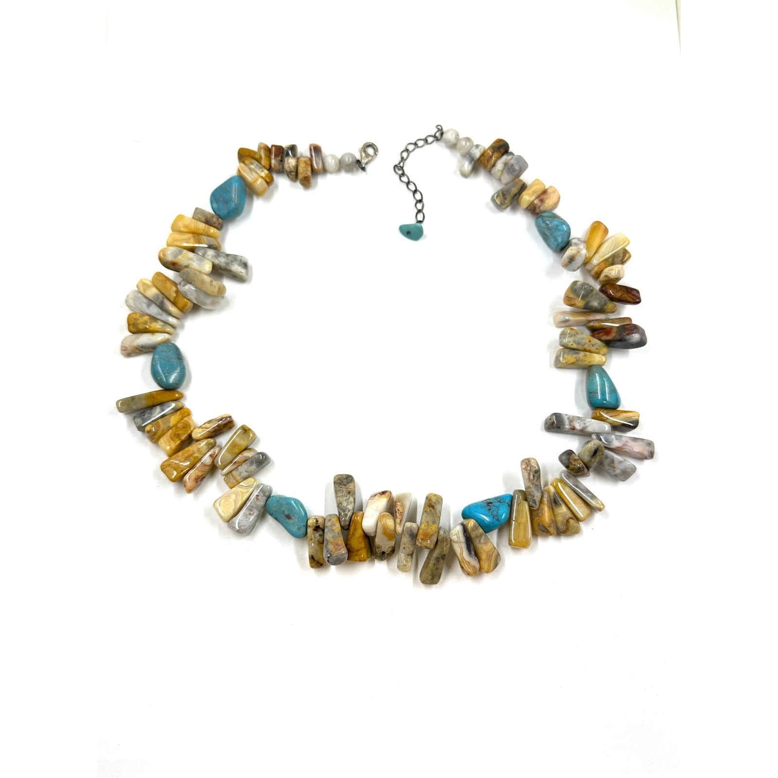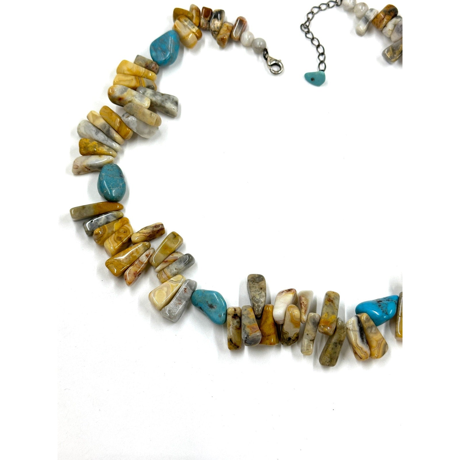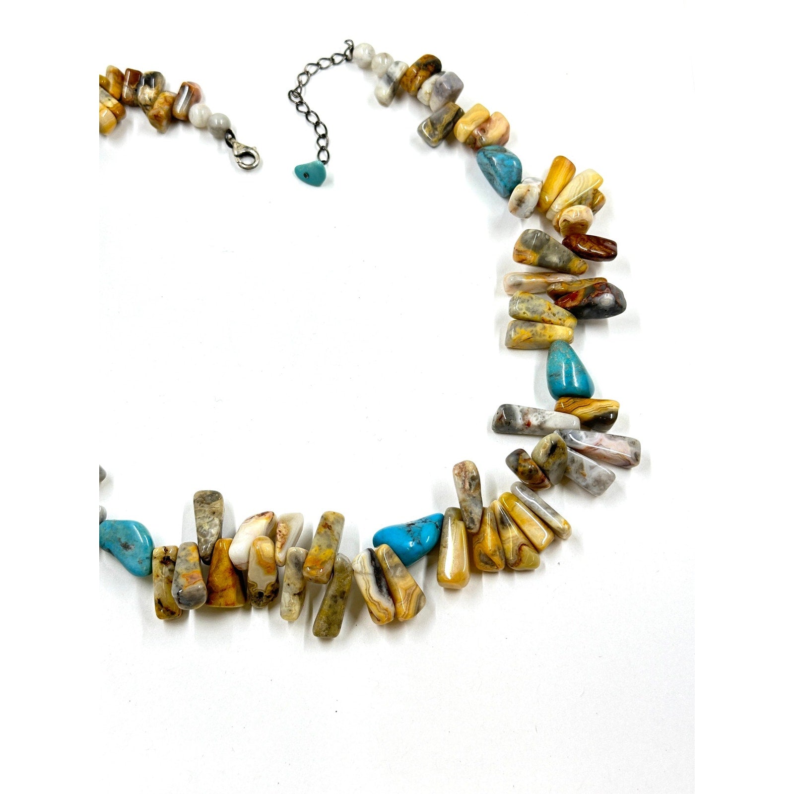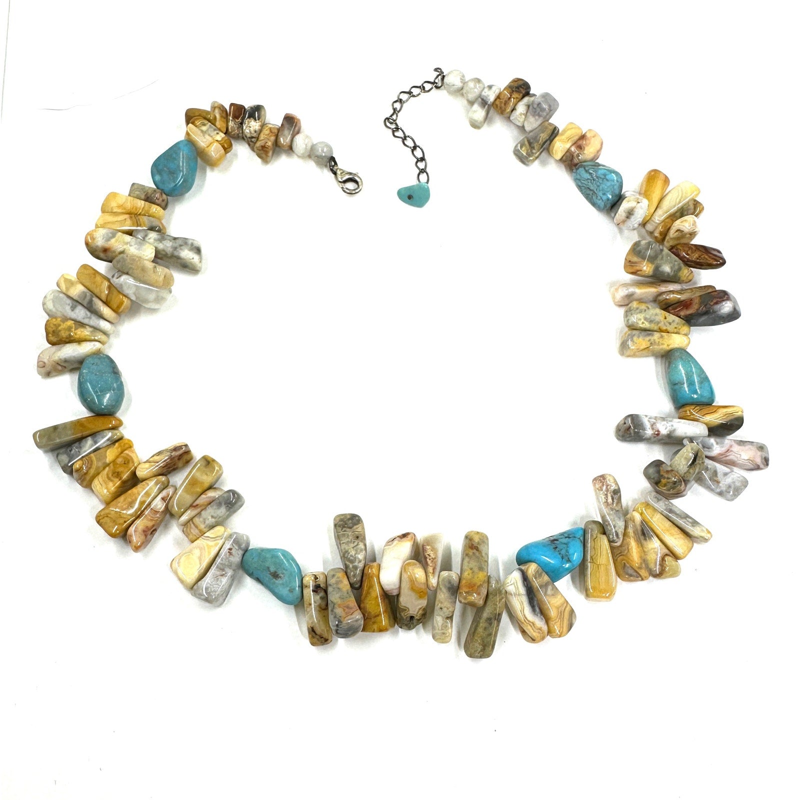 Sterling Silver 925 Southwestern Jasper Stone Turquoise Beaded Choker Necklace