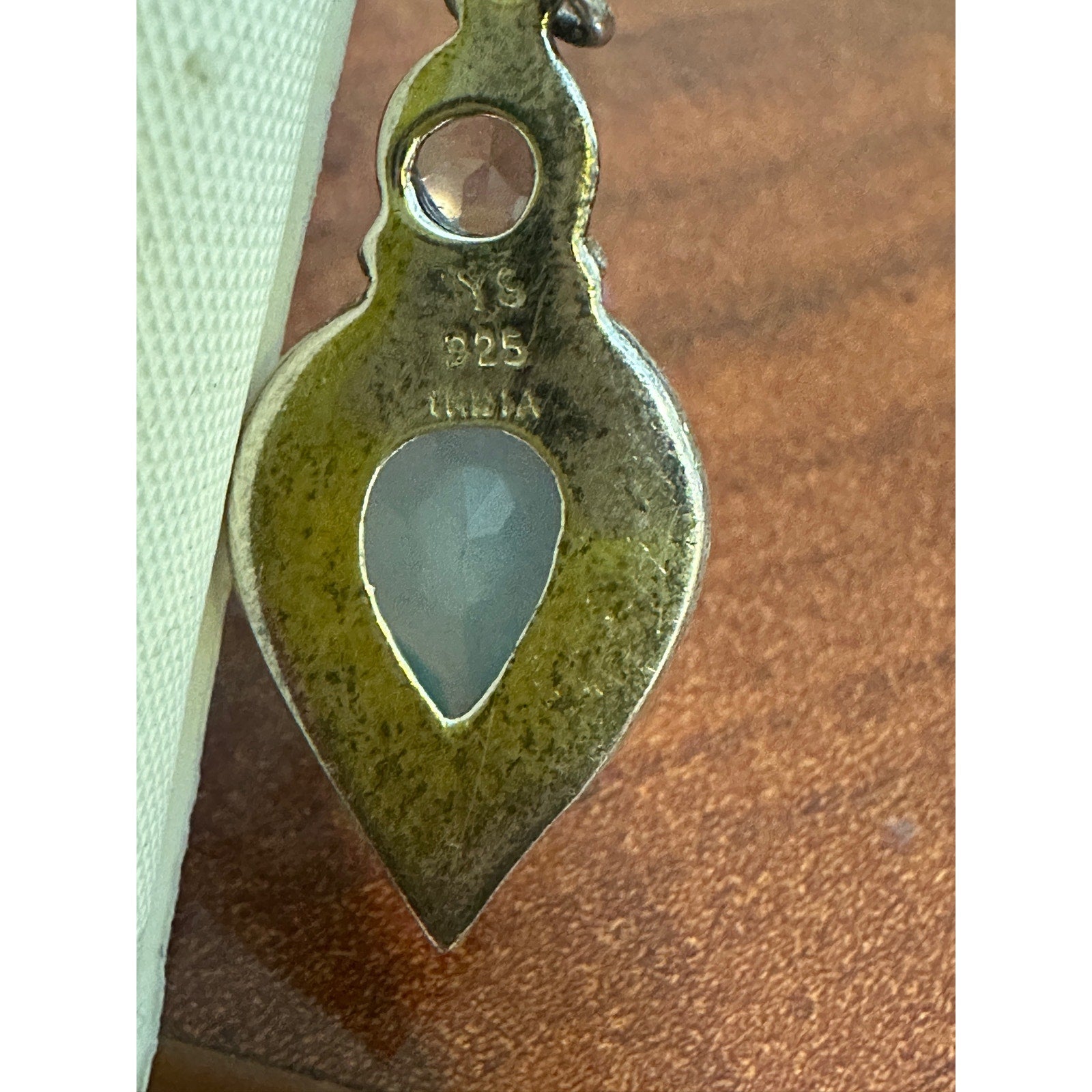 925 Sterling Silver Blue Chalcedony Earrings. They measure 1 3/4” x 1/2”. Marked YS 925. Very good condition.