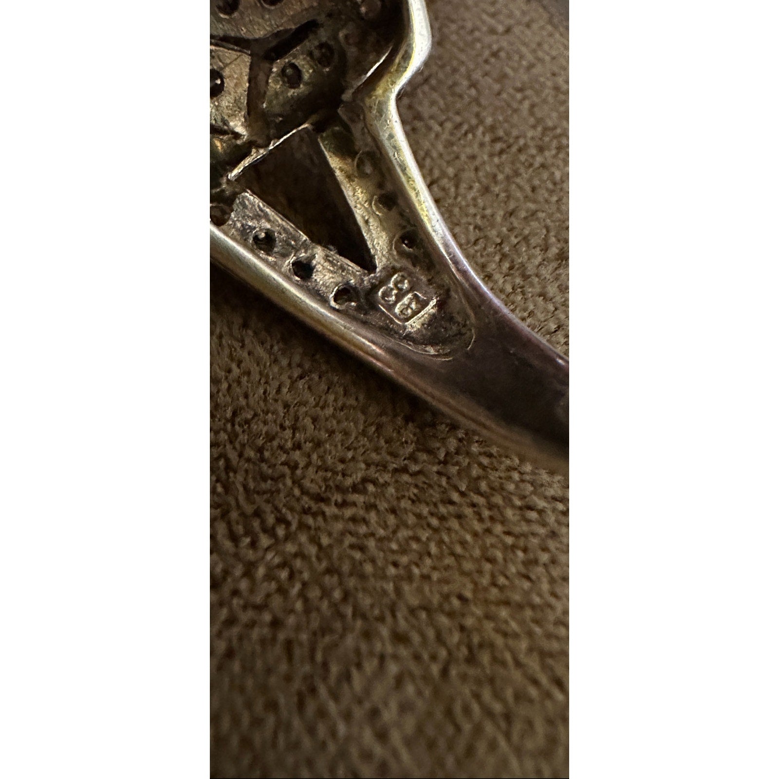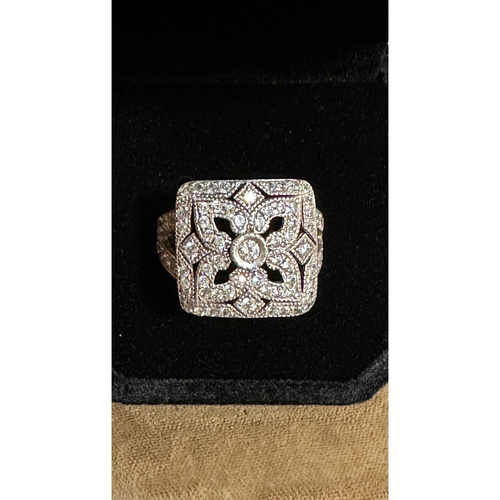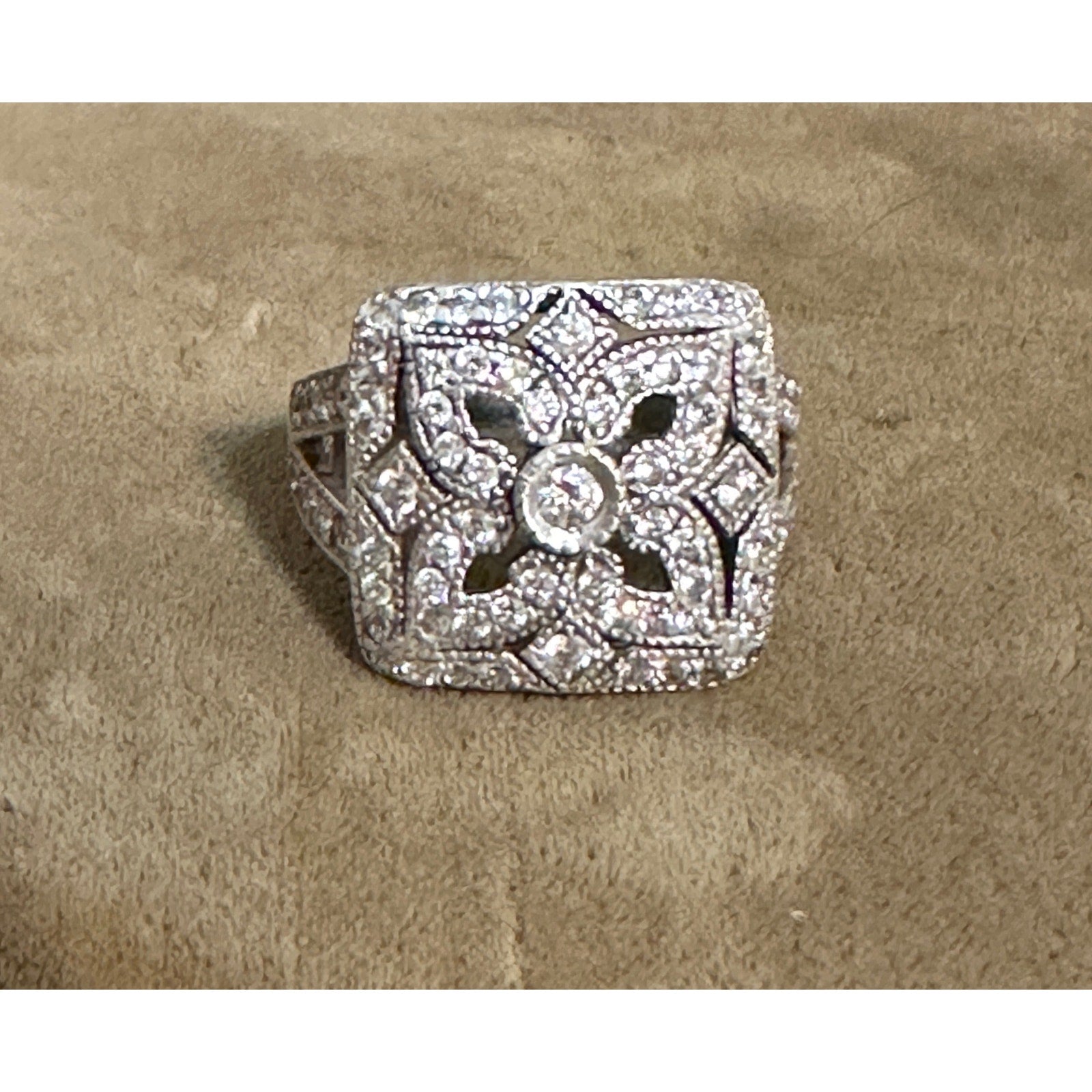 Lovely Sterling Silver CZ Art Deco Style Ring Sz 9. Top measures approx 5/8”. Filigree Design loaded with Sparkling CZs. Weighs 7.2 grams. Marked CC CZ, 925 China