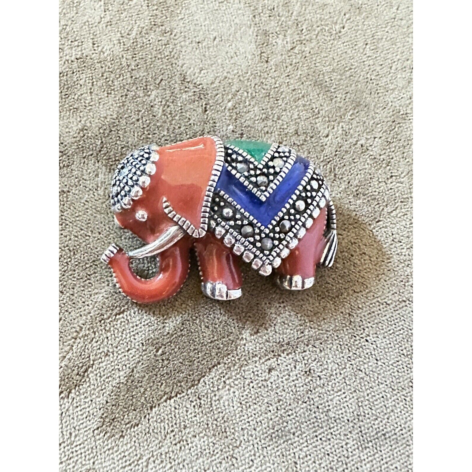 Sterling Silver Enamel Marcasite ELEPHANT Brooch Pin. 1 3/8” X 1”. 11 grams.