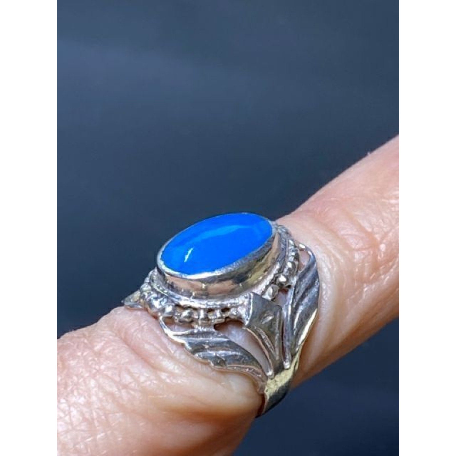 Sterling Silver Turquoise Blue Stone Ring size 5. Dont know if this is a stone or enamel. Its very pretty. Oval measures 13x10mm. Ring is a small size 5 or 4 7/8