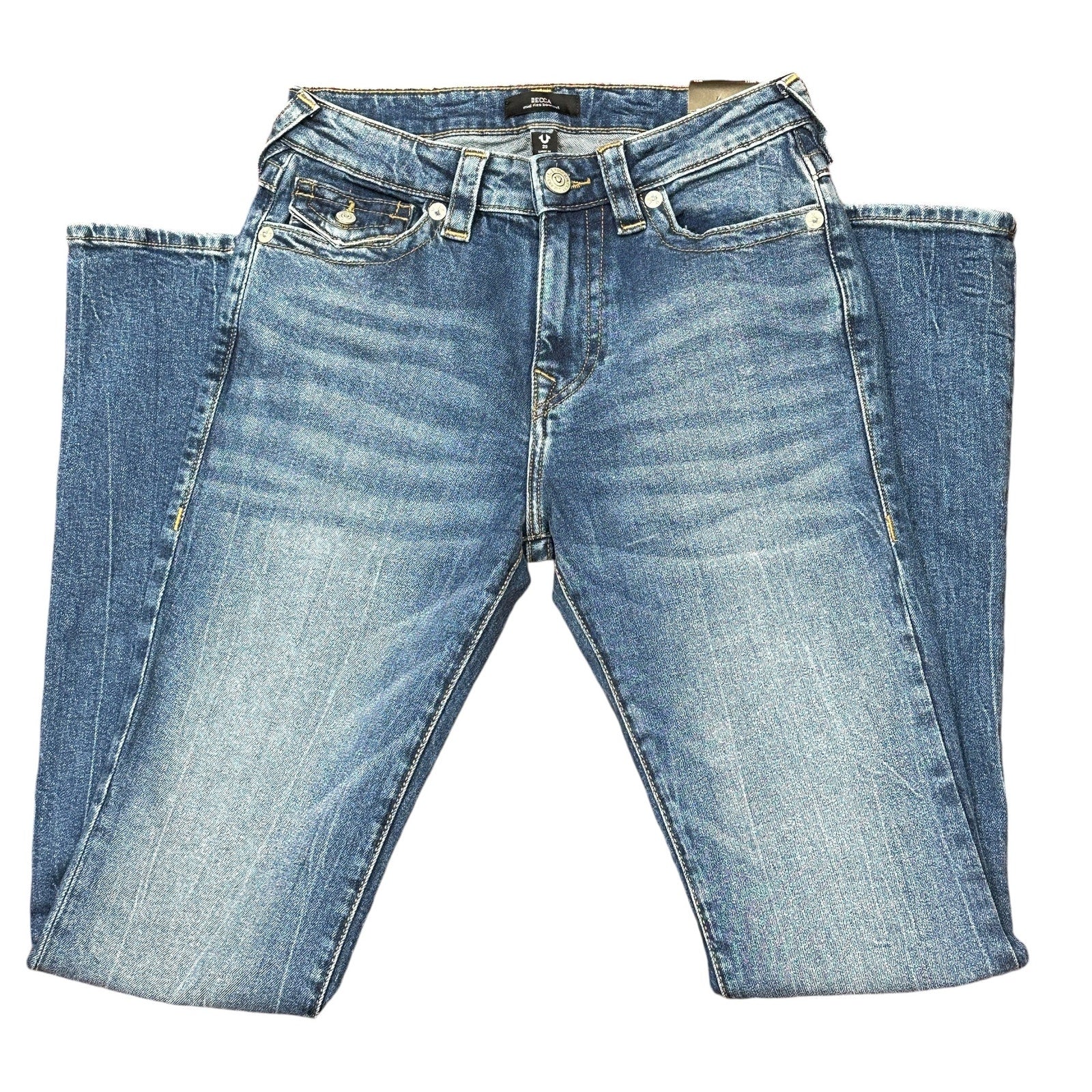 True Religion Becca Mid Rise Boot Cut Flap Pocket Denim Jeans W29 Stretch NWT