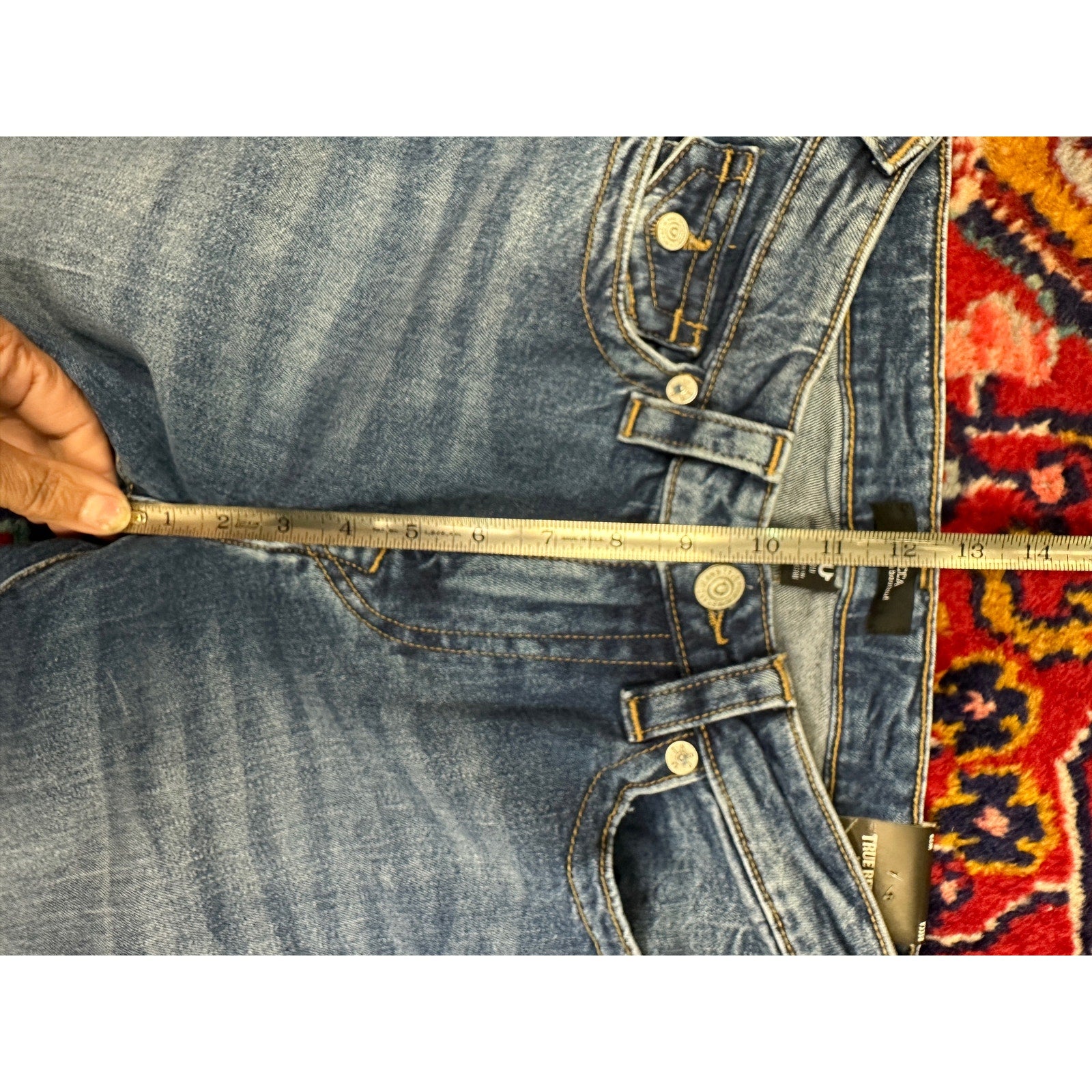 True Religion Becca Mid Rise Boot Cut Flap Pocket Denim Jeans W29 Stretch NWT. Measurements shown in photos