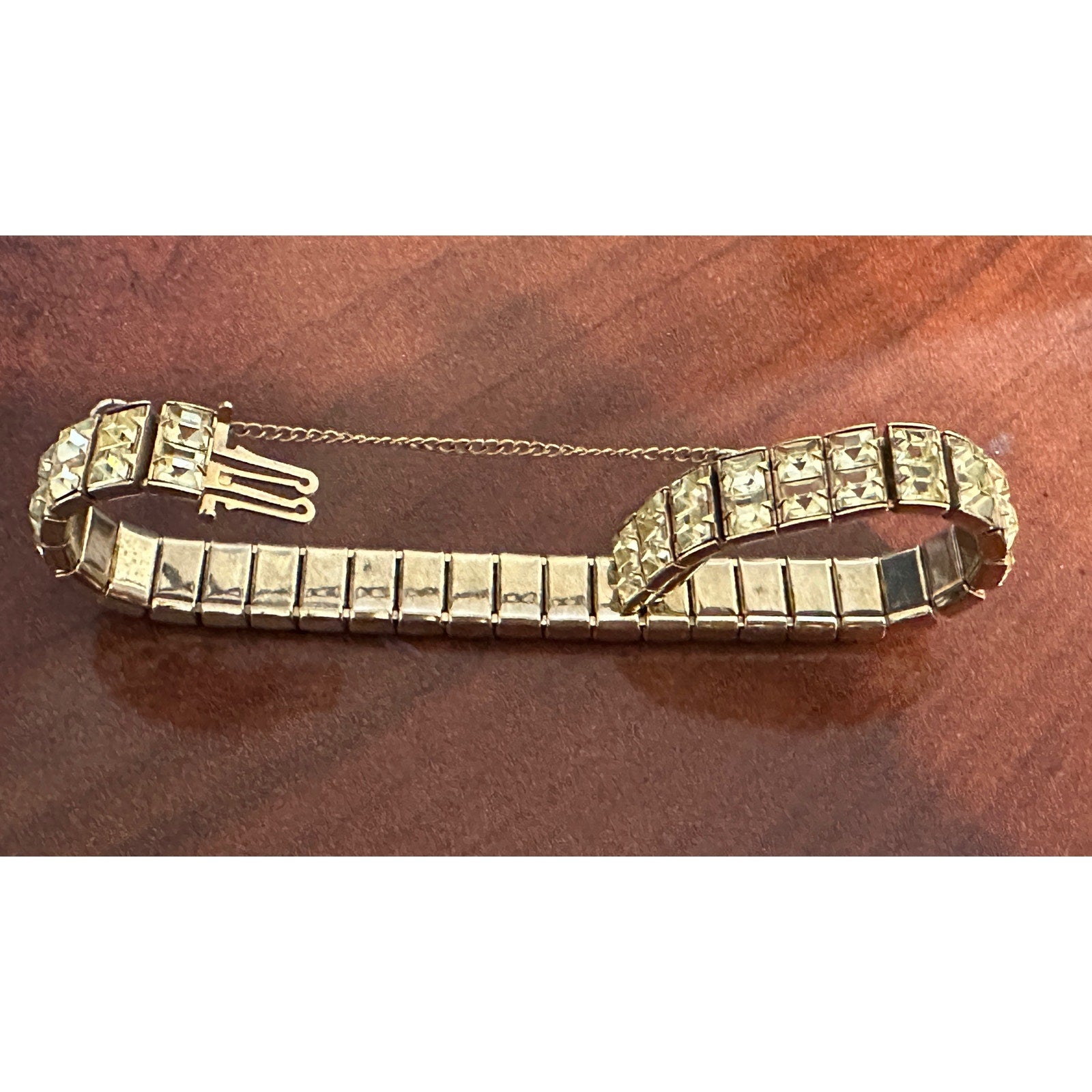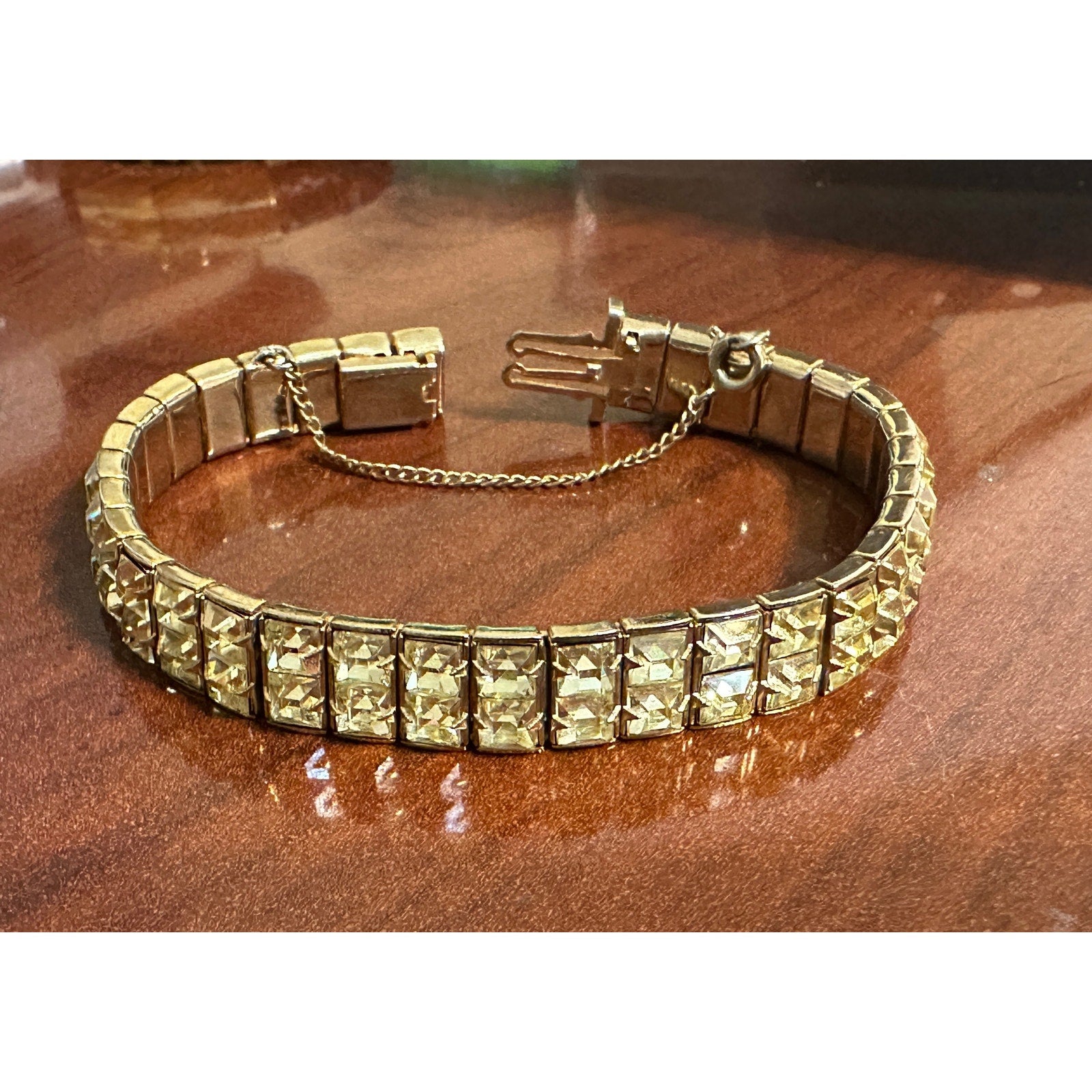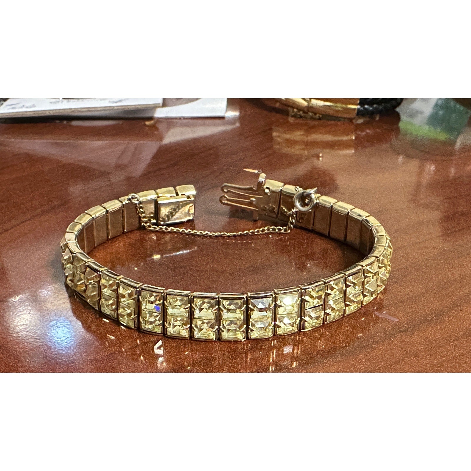 Vintage Art Deco Goldtone Double Row Yellow Square Cut Stones 7” x 3/8”. Great condition.