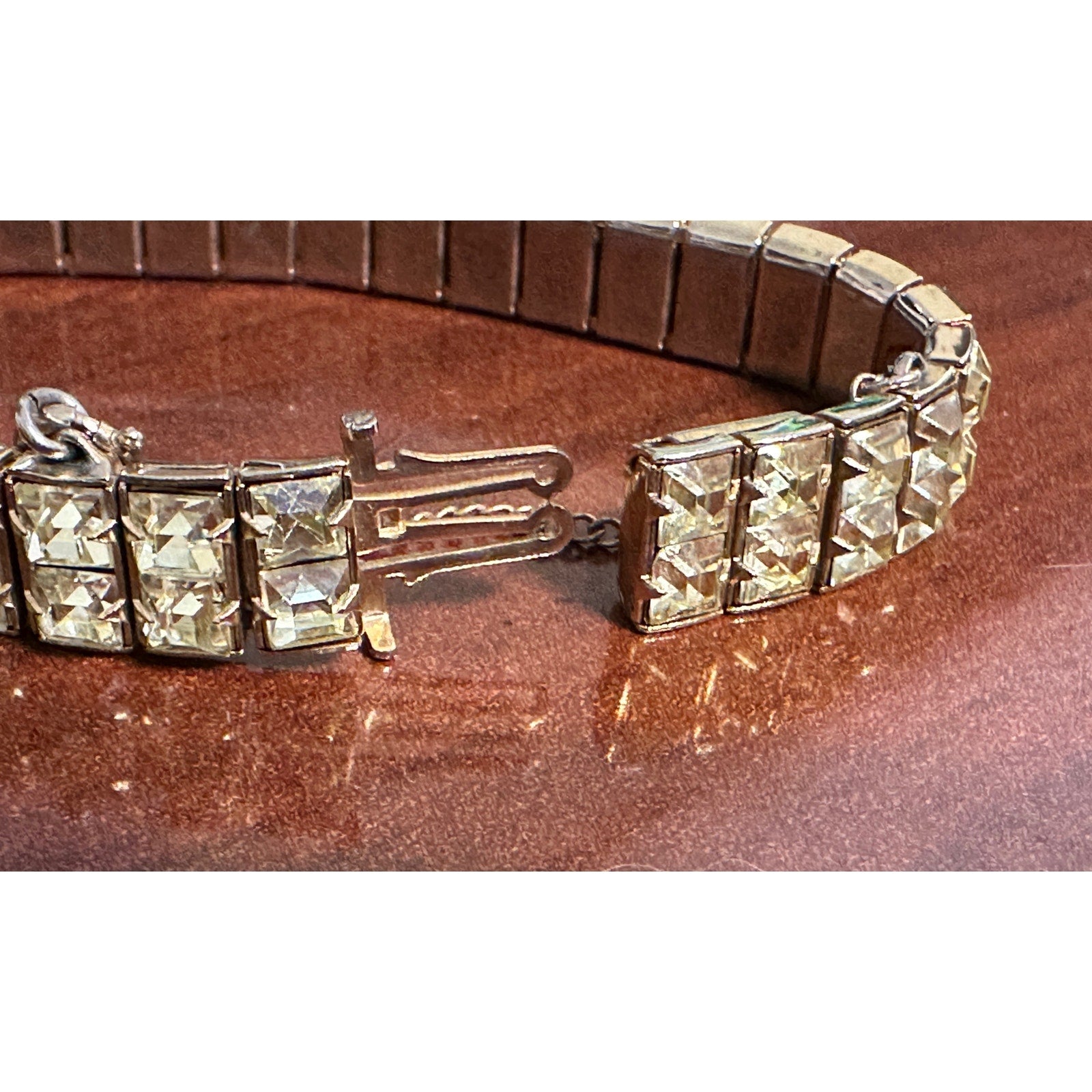 Vintage Art Deco Double Row Yellow Square Cut Stones 7”