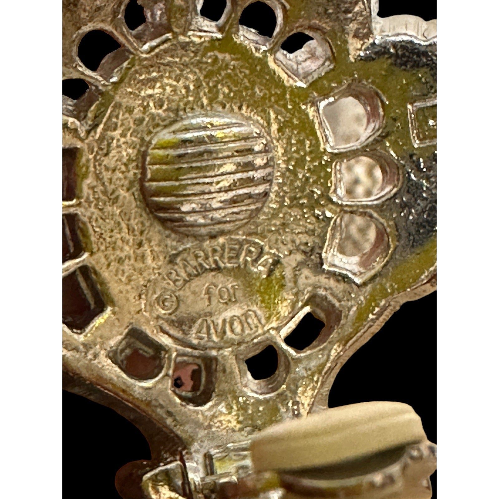 Vintage Huge Barrera for Avon Silver-tone Faux Turquoise Dangle Clip Earrings