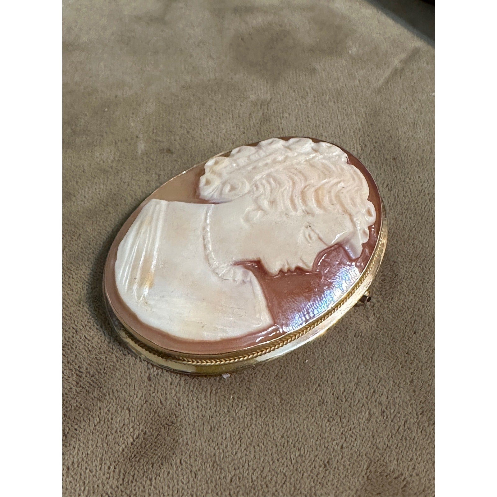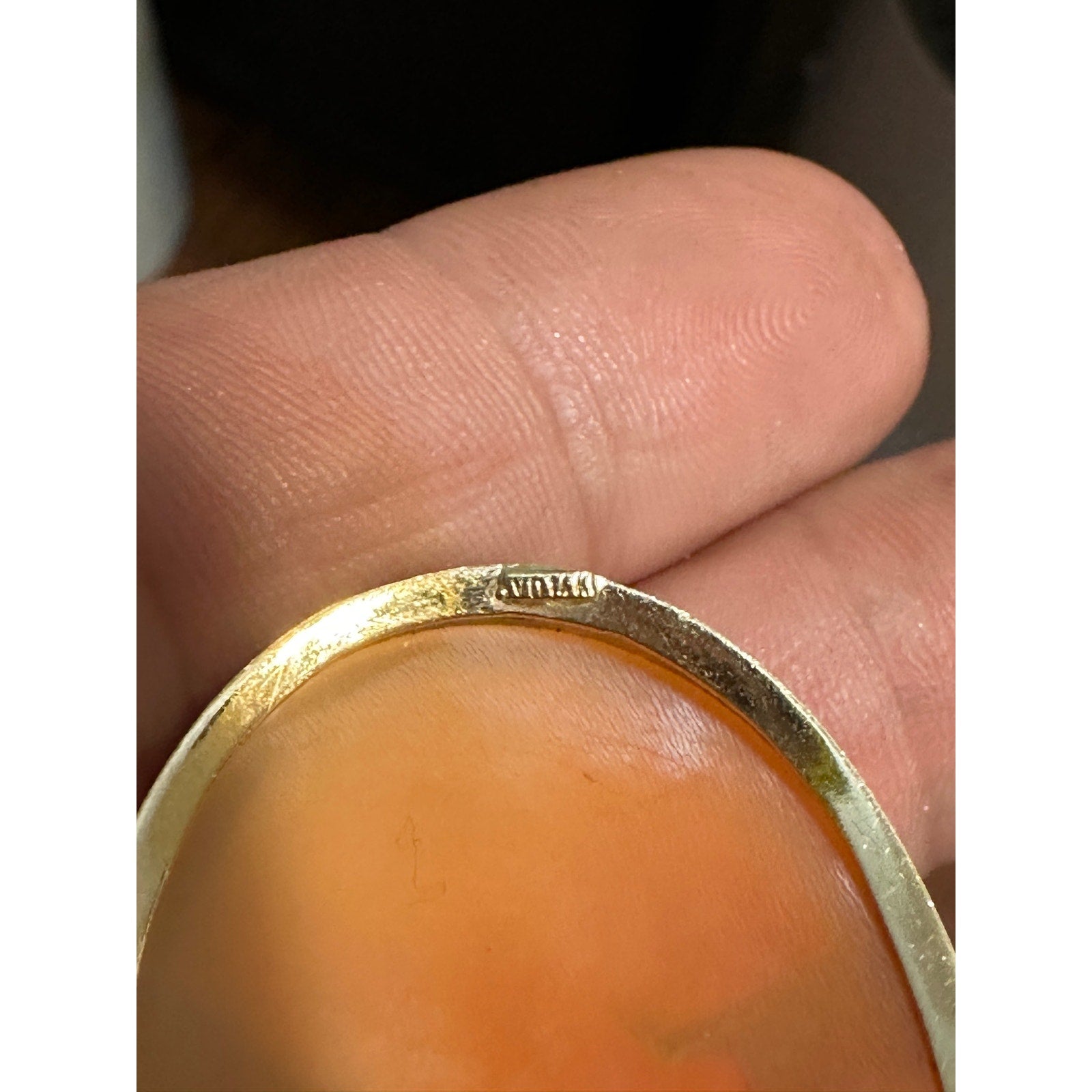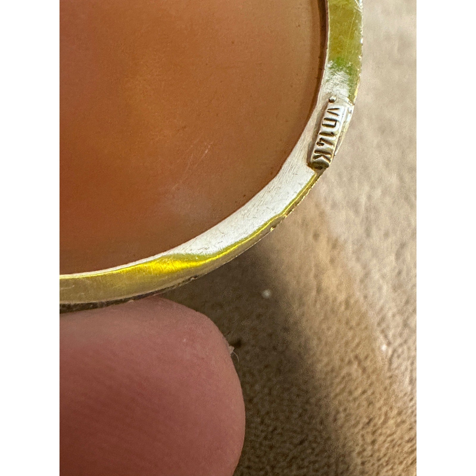 Vintage Large Yellow Gold Carved Cameo Pin Pendant Marked VD 14k