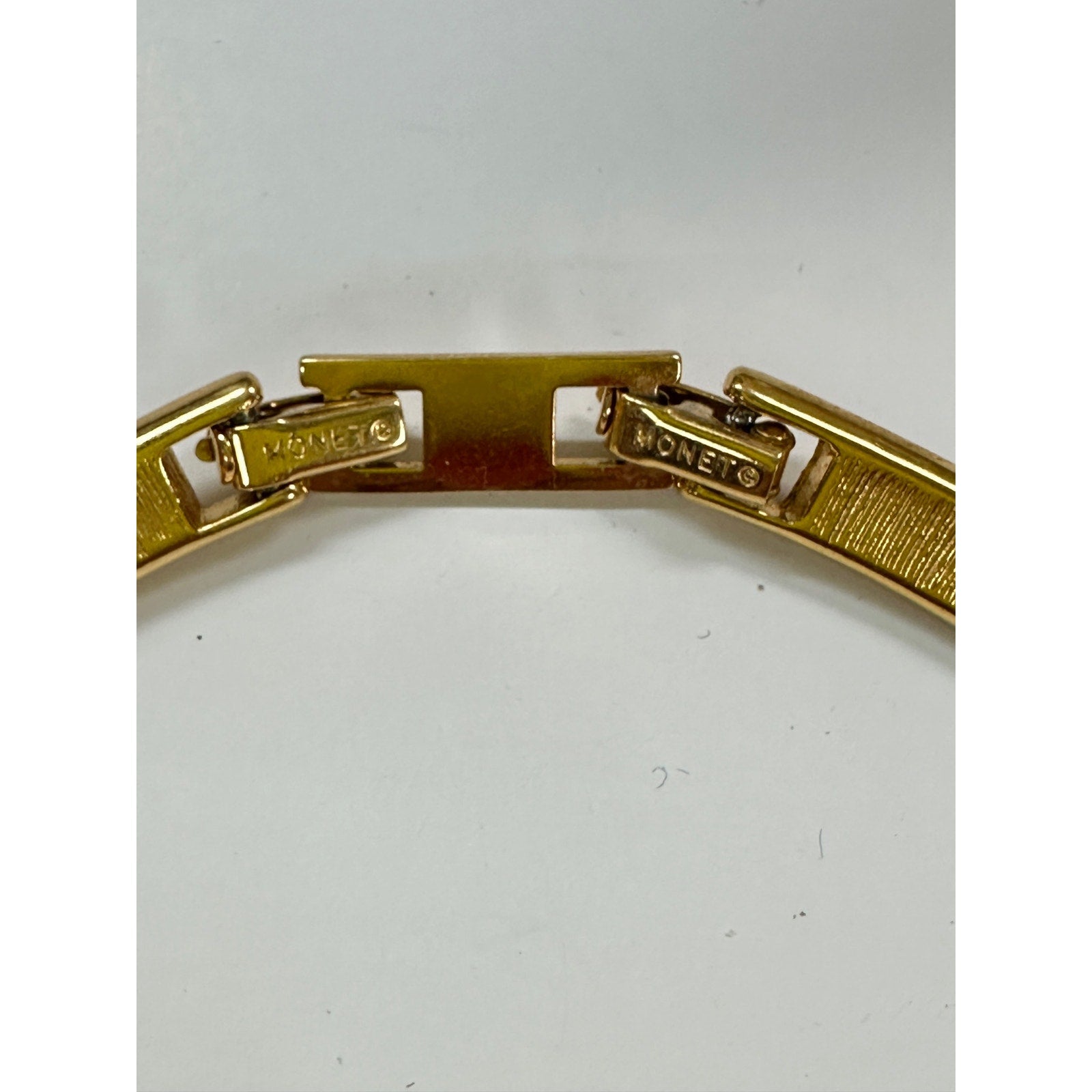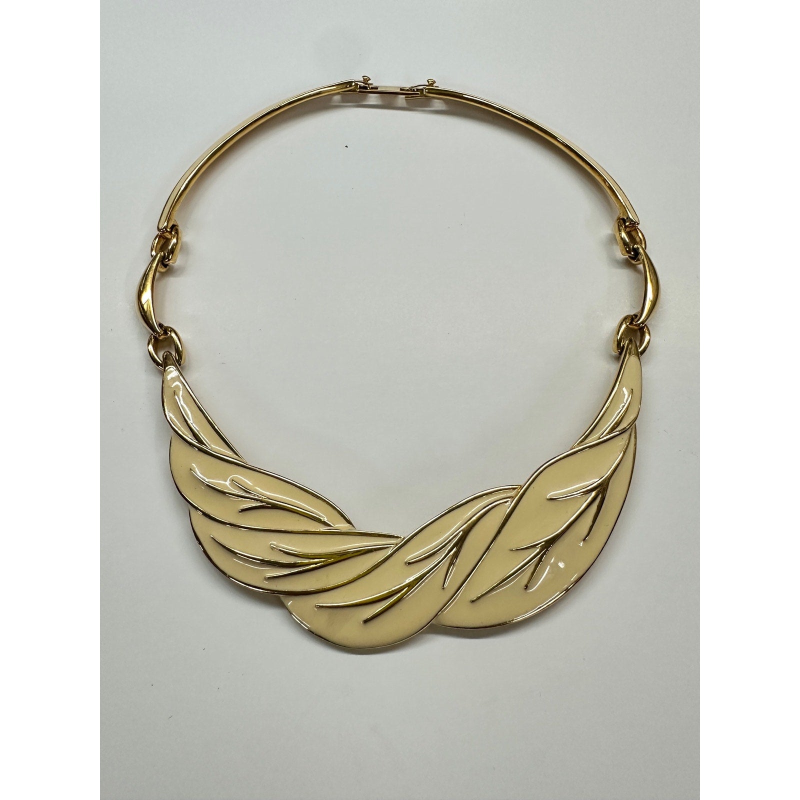 Vintage Monet Gold-tone Cream Enamel Choker Collar Necklace w/ extender
