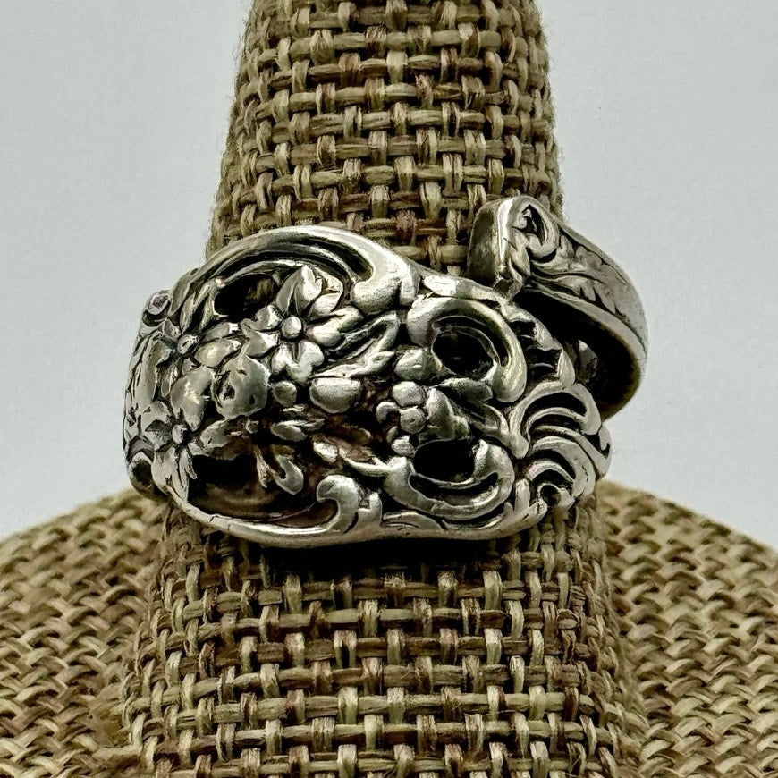 Vintage Reed & Barton Floral Spoon Ring Bypass ring Sz 6.5
