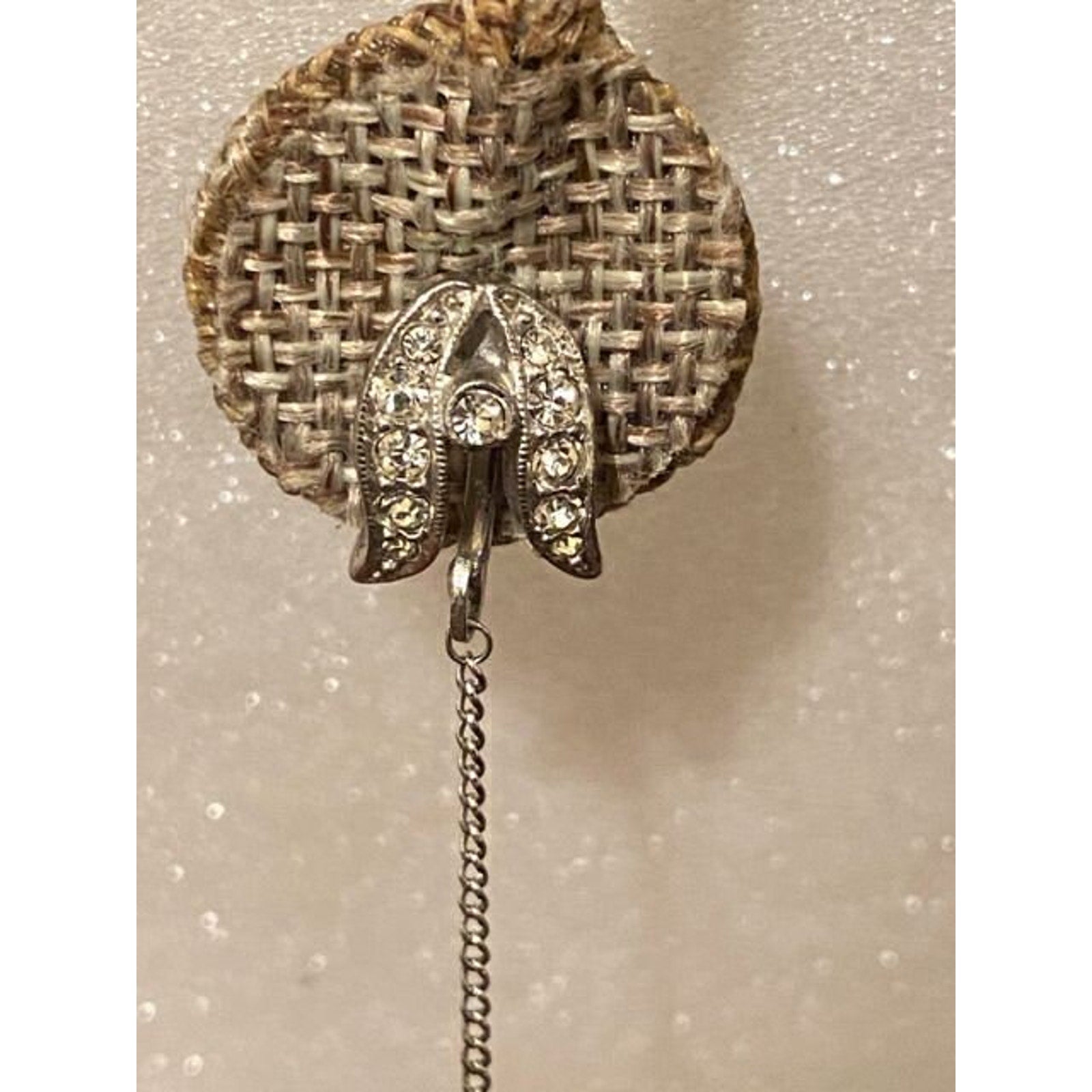 Vintage Silvertone CZ Filigree Ball Dangle Bead Clip Back Earrings