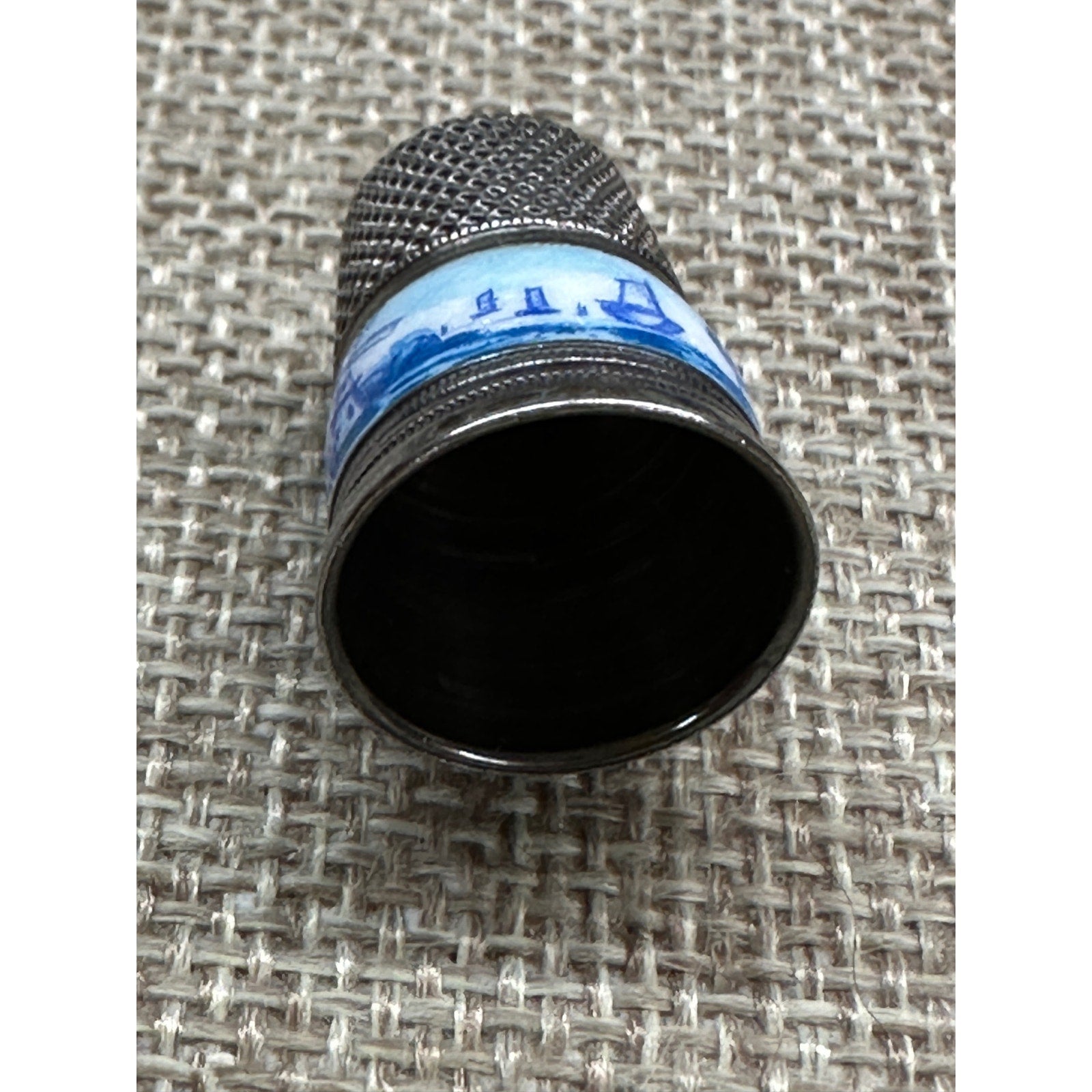 Vintage 935 Sterling Silver Enamel DELFT Thimble. Excellent condition.