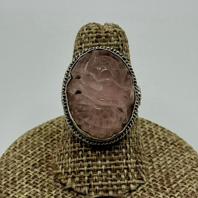 Vintage Sterling Silver Carved Quartz Ring Size 6. Top measures 7/8” x 3/4”. Weighs 6.8 grams. Tested.