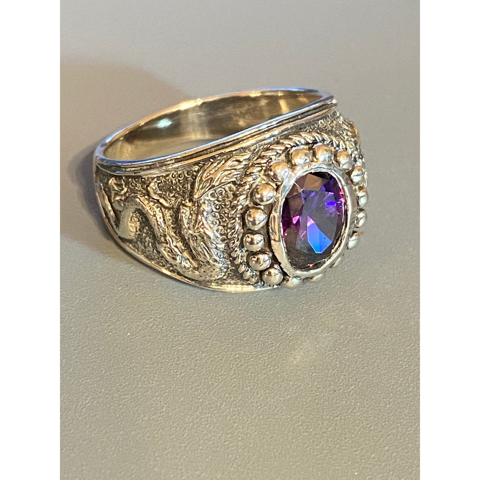 Vintage Sterling Silver Chinese Dragon Amethyst Ring Sz 8 3/4 Size