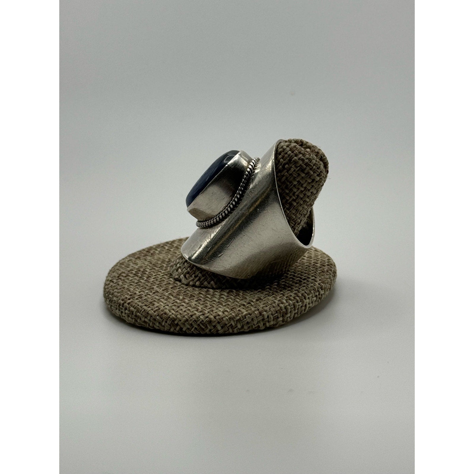 Vintage Sterling Silver Wide Band Blue Kyanite Ring Size 8
