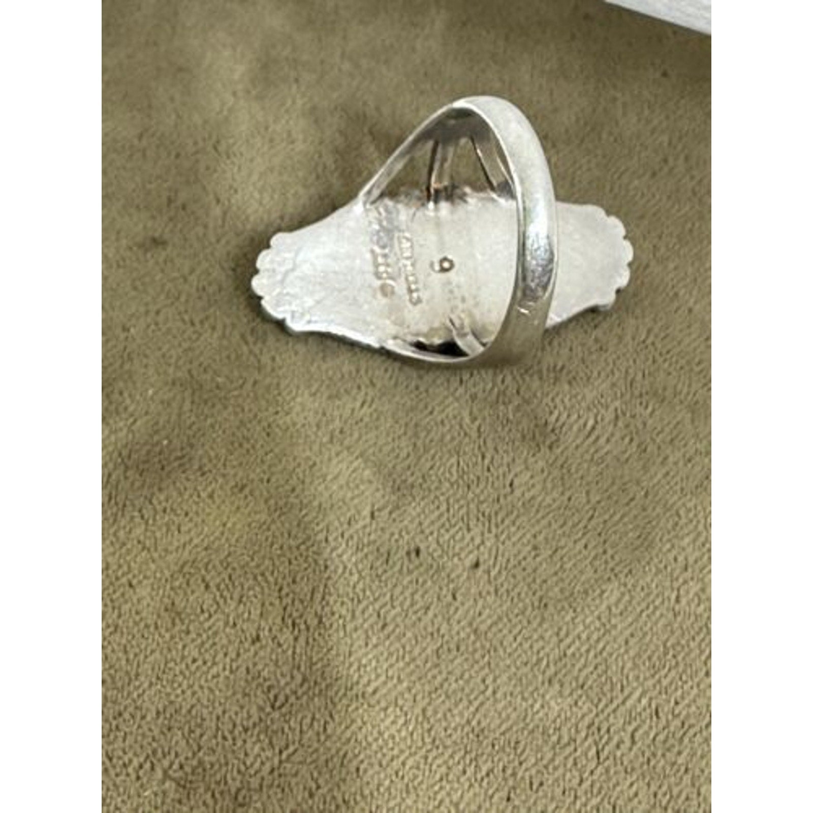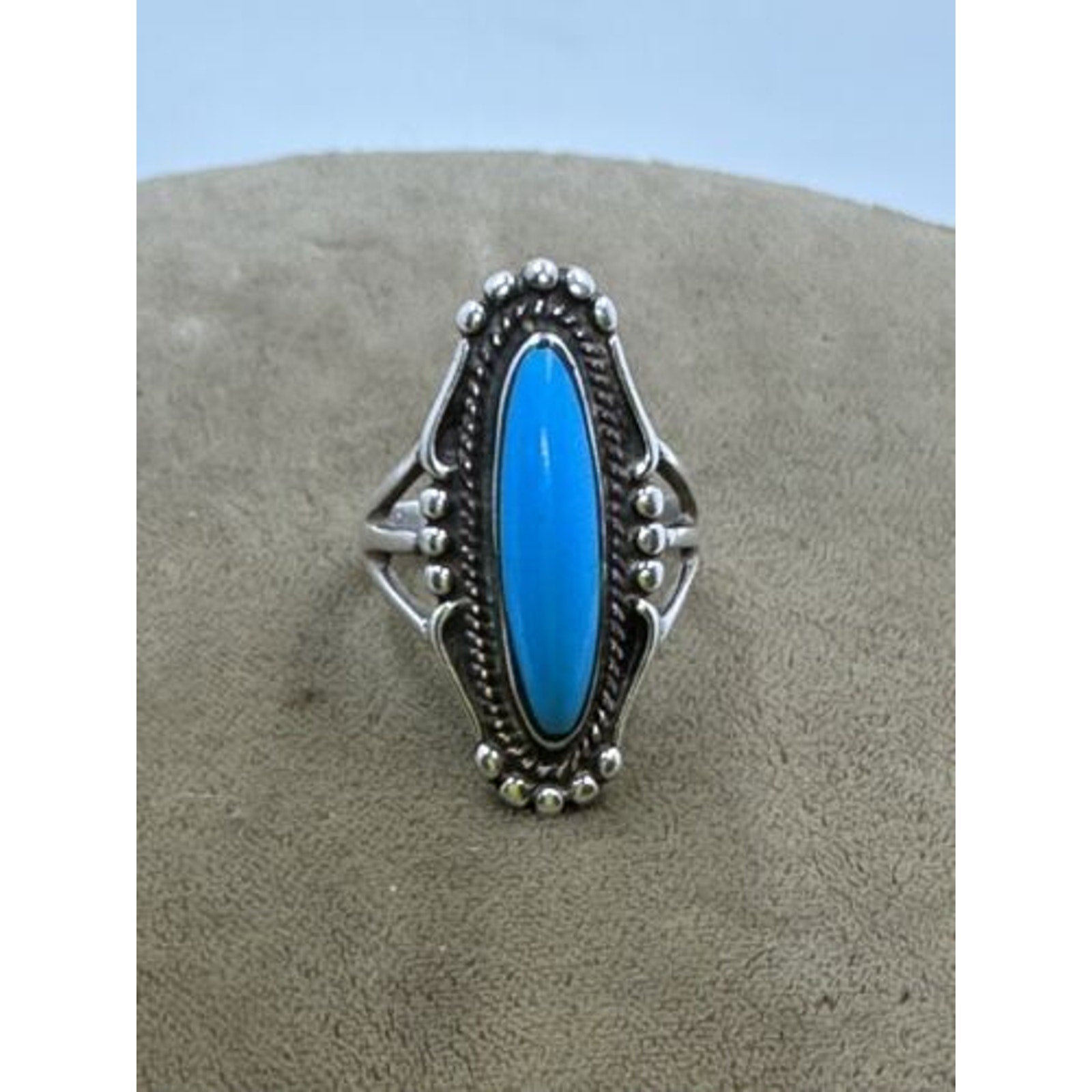 Vintage Ted OTT Native American Sterling Silver Turquoise Ring size 6. Top measures 30mm x 13mm. Stone is 21mm x 5mm. Weighs 6.3g