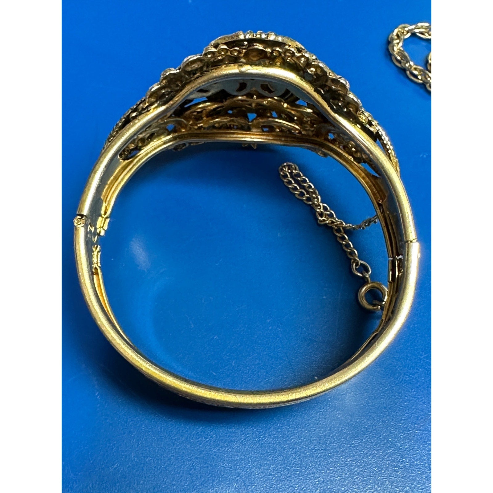 Vintage Victorian Style Goldtone Goldstone Necklace & Hinged Bangle