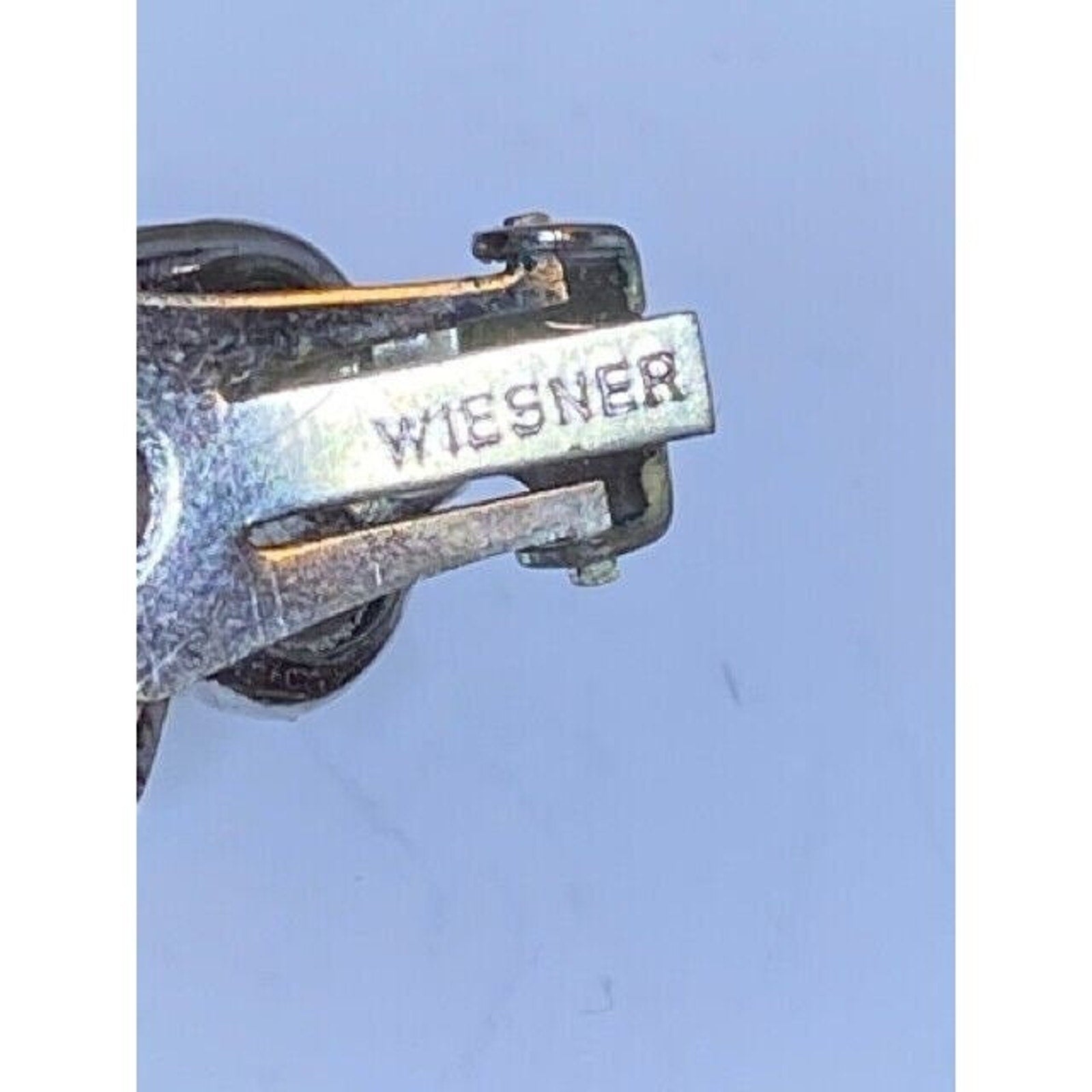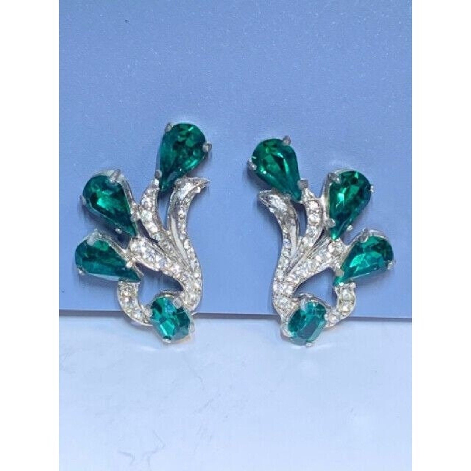 Vintage Weisner Silvertone Green Clear Rhinestone Clip Back Earrings