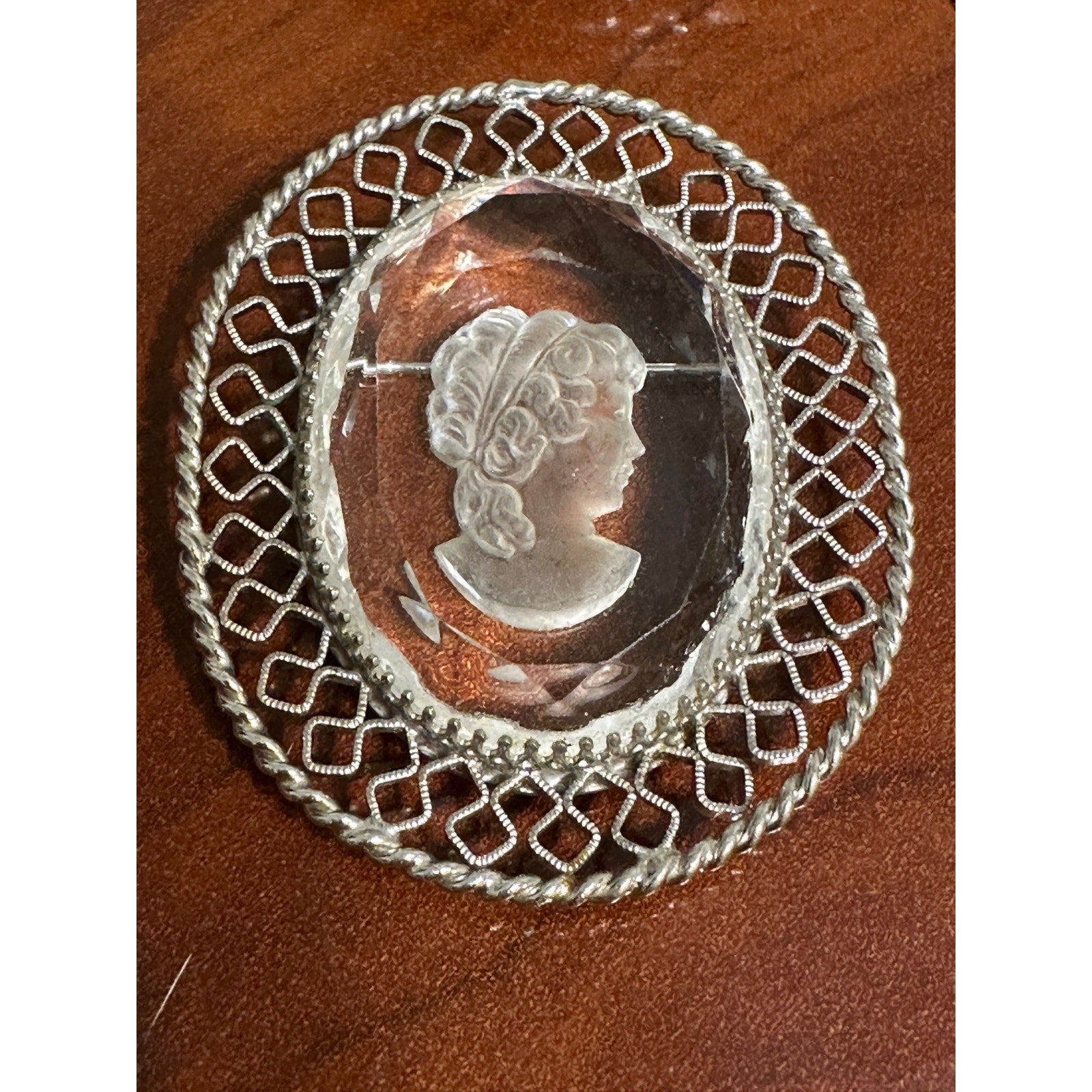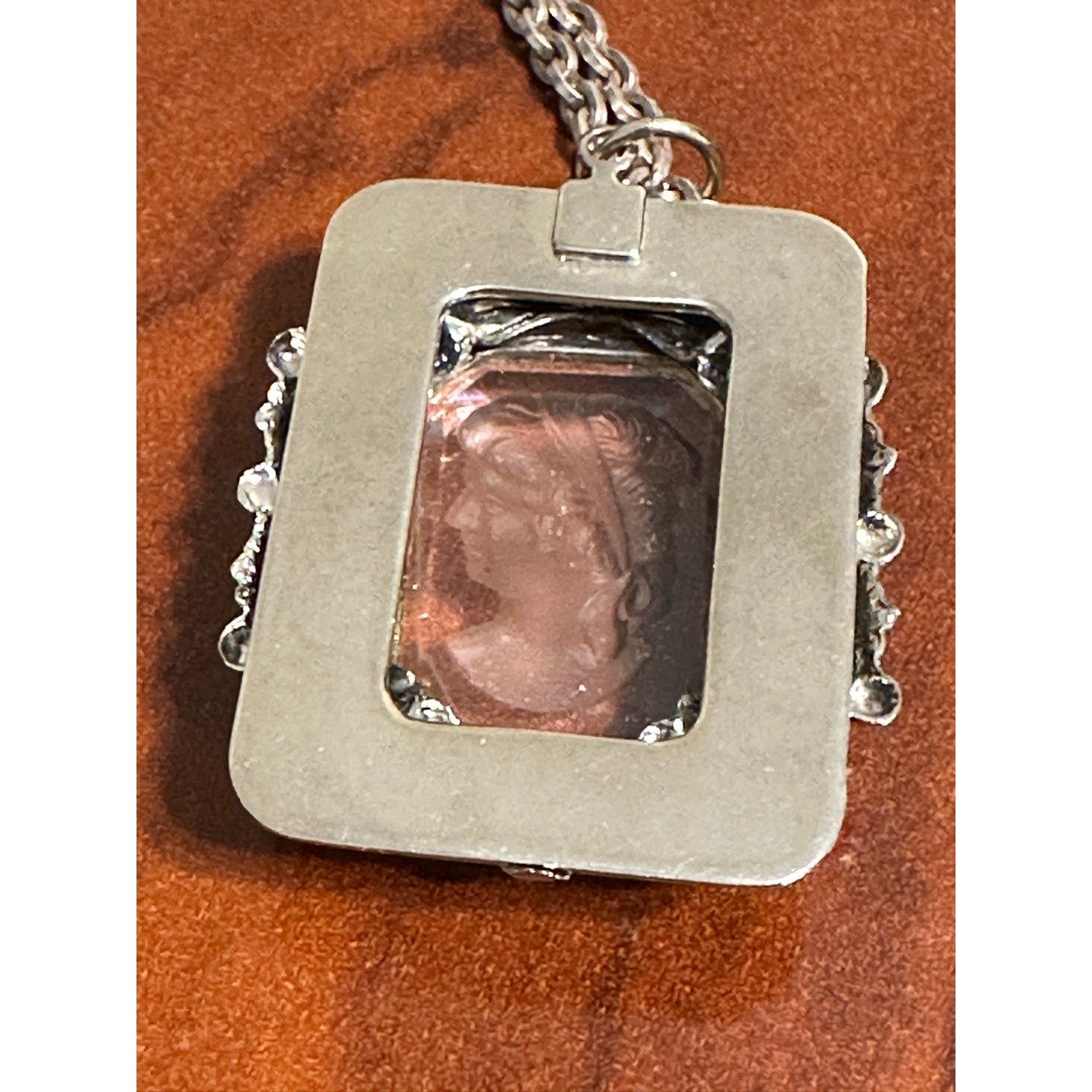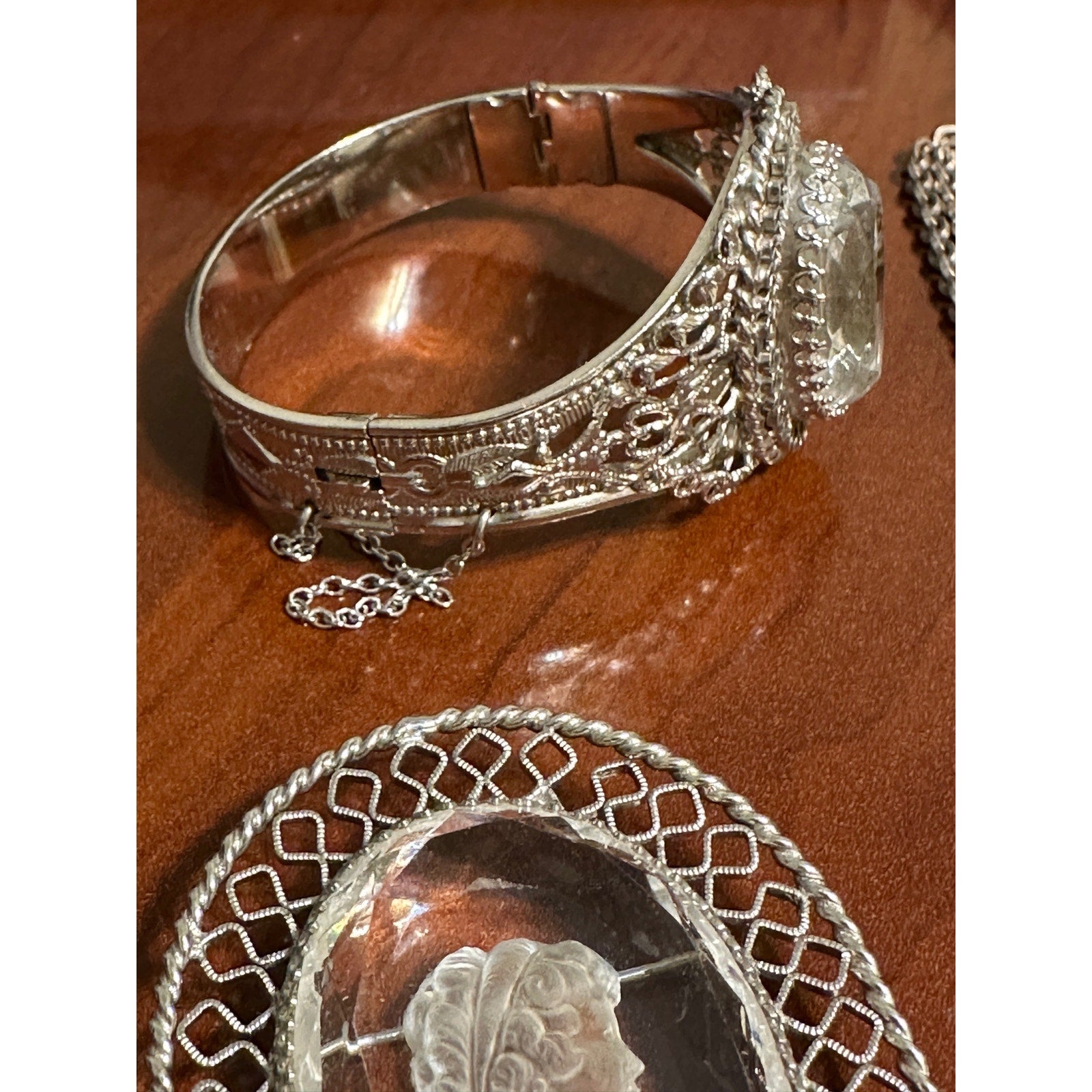 Vintage Whiting & Davis Silvertone Glass Cameo Necklace, Bracelet & Brooch Bracelet is 6 1/4”